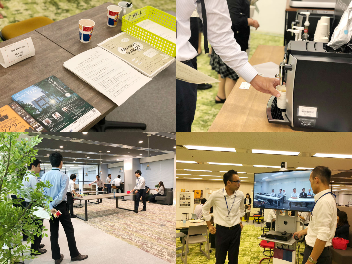 コーヒーの提供、卓球ブースの設置、各本部の事業紹介と盛りだくさん!(他の支社にテレビ動画中継も!)