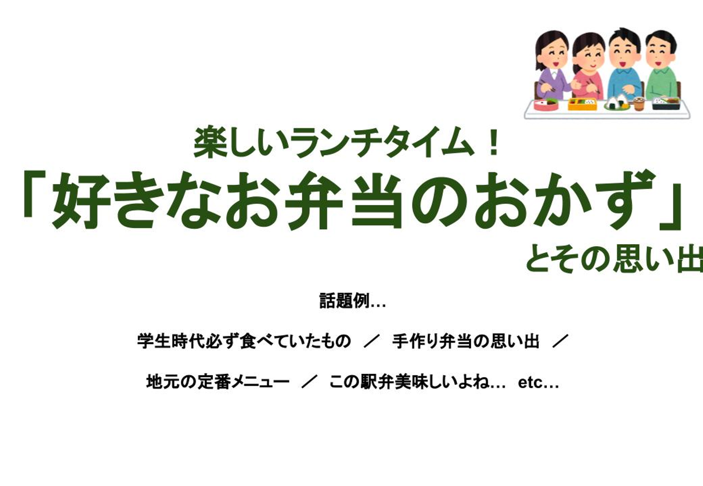 どんなことを話してましたか〜?と聞いてみると、お母さんがつくってくれたお弁当の思い出、今日のメニューについてのコメントなど、さまざまなお話を聞くことができました!