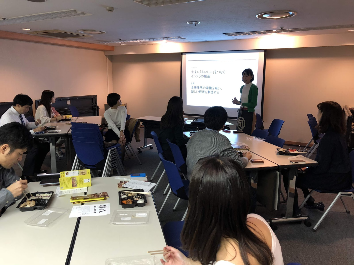 お弁当のご紹介、アグリゲート様の会社や理念のご紹介などもお話いただきました。