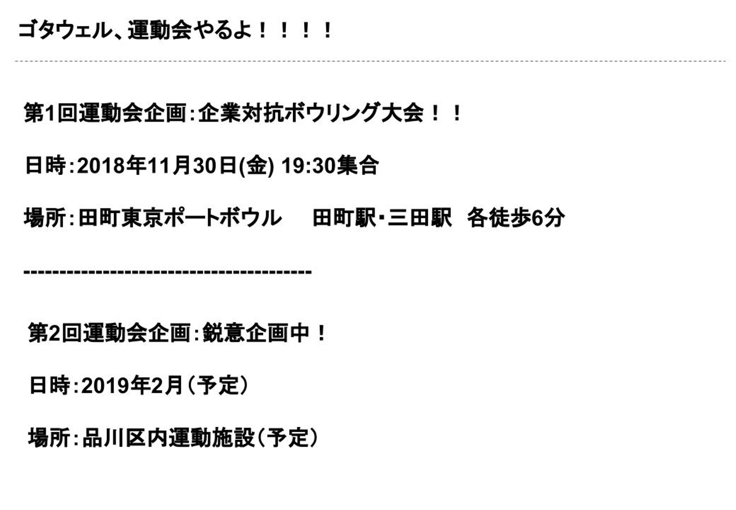 ここで、ゴタウェル主催の運動会のお知らせが告知されました!