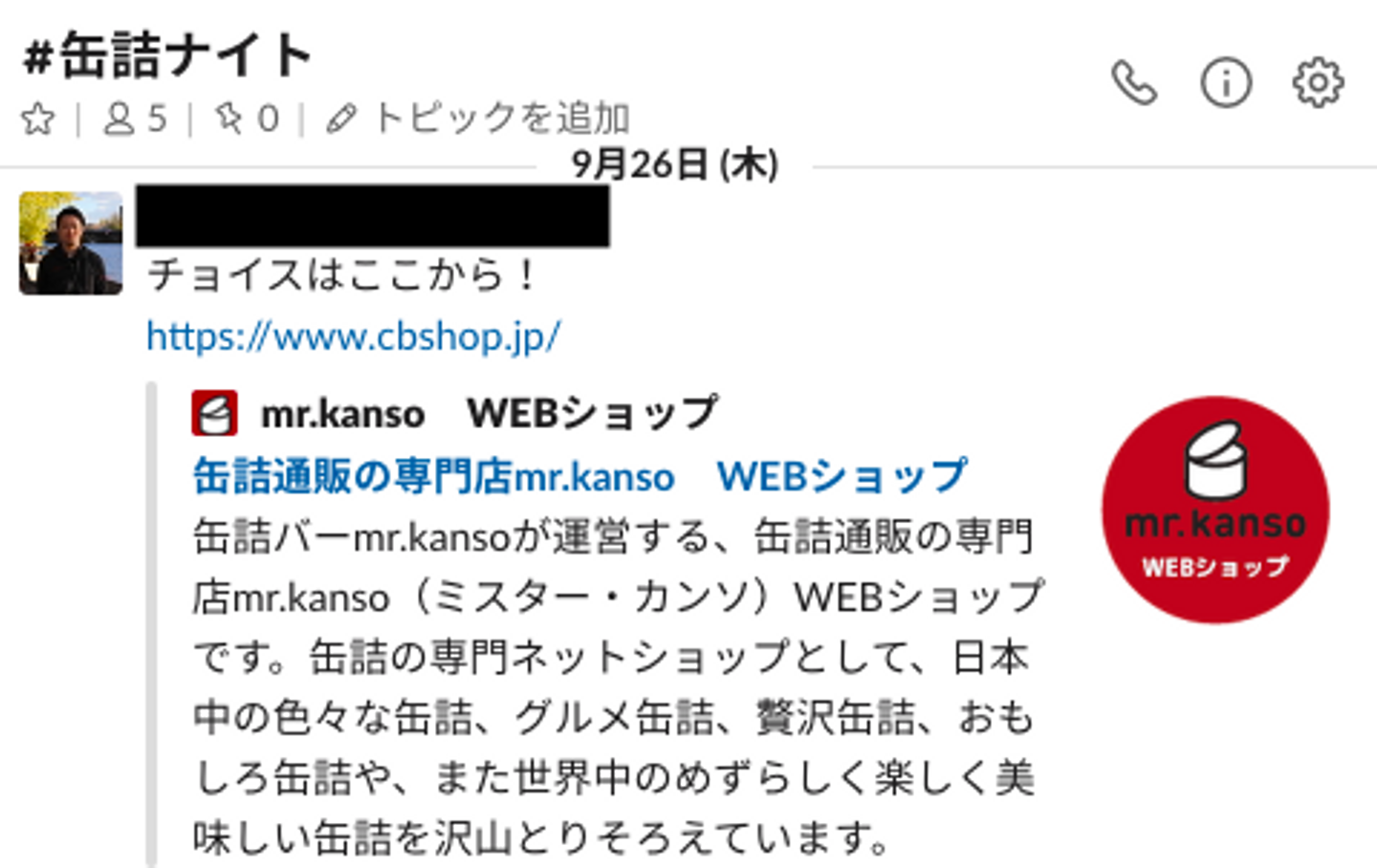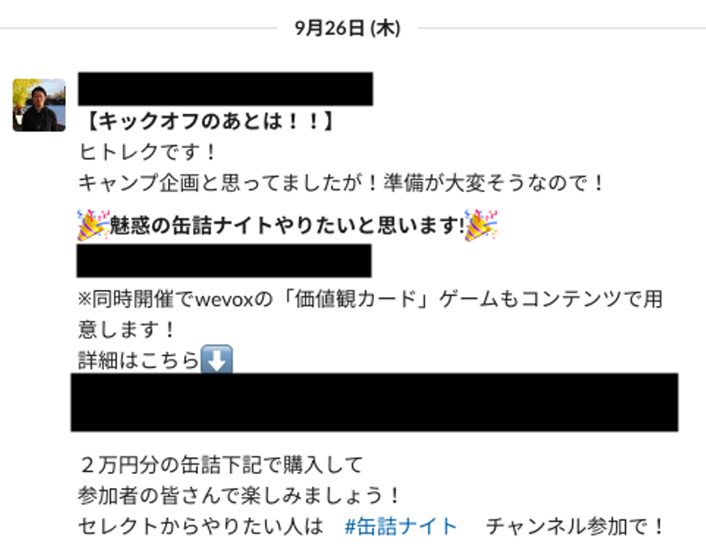 投稿後すぐに作られたSlackチャネル「#缶詰ナイト」。