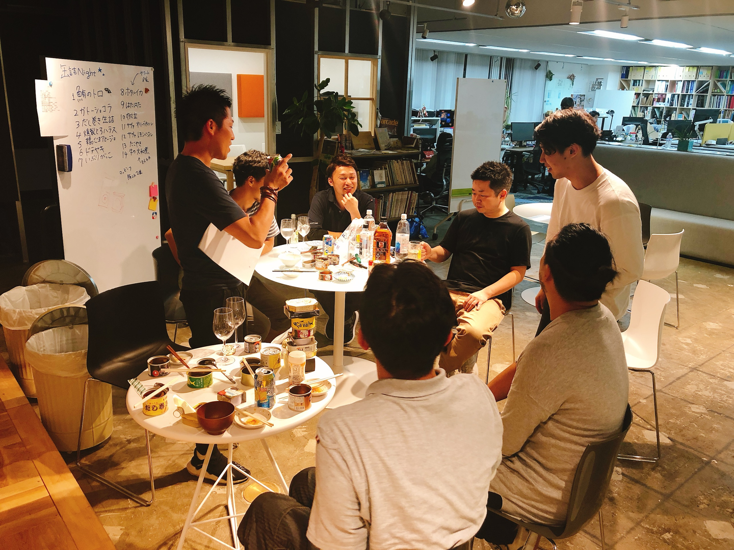 オフィスで炊いたお米と一緒に食べるメンバーもいれば、キッチンで缶詰のホタルイカに調味料を足してアレンジするメンバーもいたりと、夜遅くまで缶詰を堪能する「魅惑の缶詰ナイト」となりました。