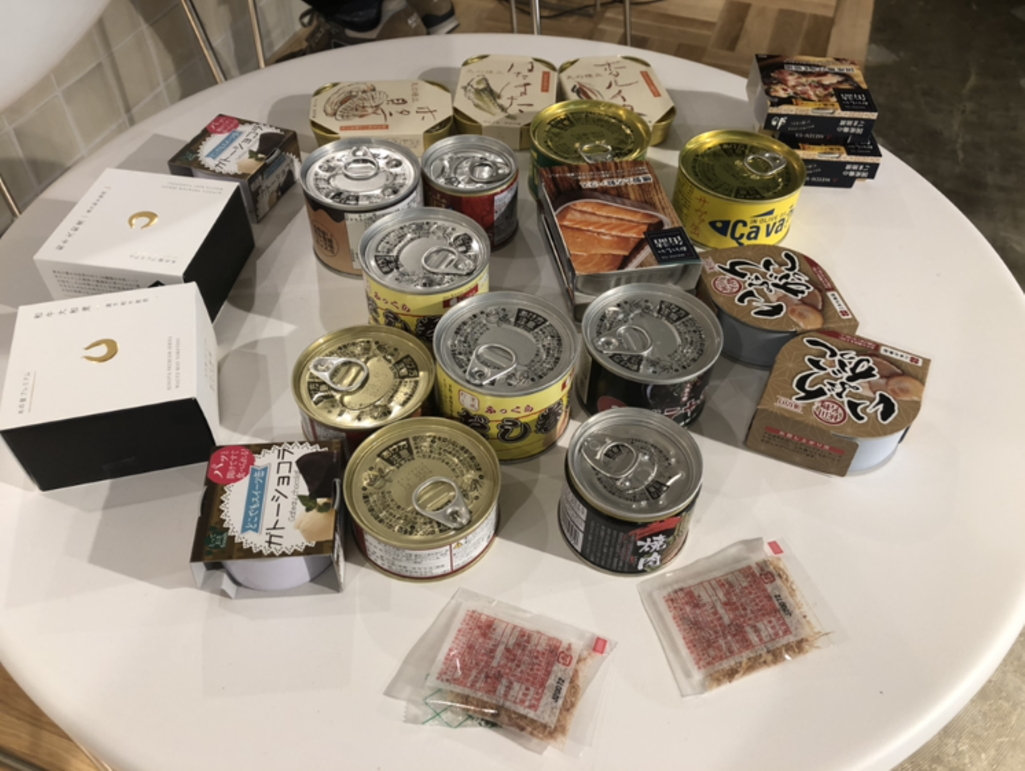 ネットで買い込んだ缶詰たちを、できるだけ綺麗に机に並べてイベントのスタートに備えます。