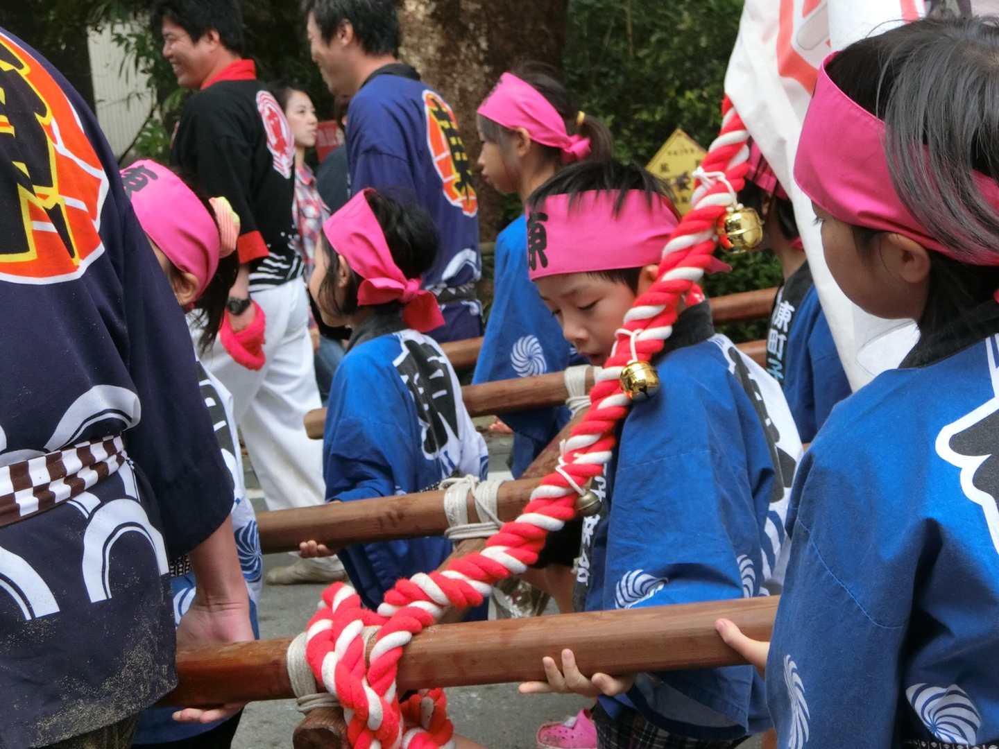 (2016.10 日和佐秋祭りちょうさ。隣町のこどもみこしを担ぐ。)