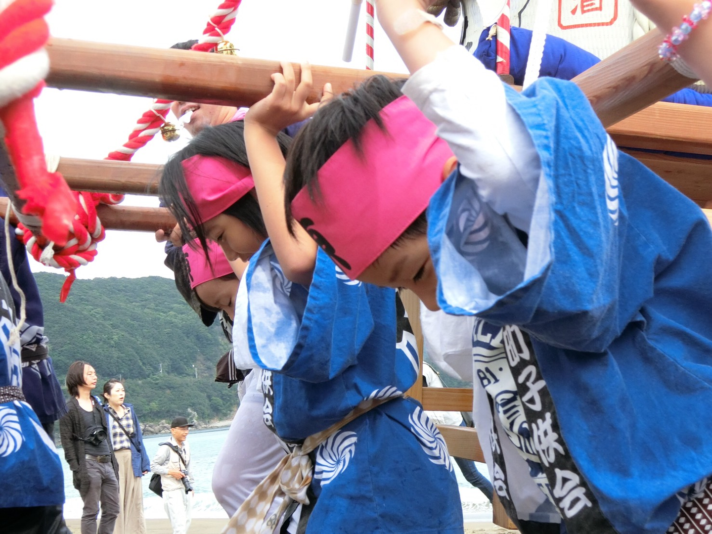 (2016.10 日和佐秋祭りちょうさ。こどもみこしの「お浜出で(海に入ること)」)