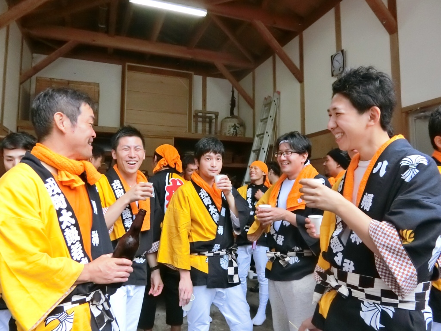 (2016.10 日和佐秋祭りにて。上記は戎邸がある戎町の方と、ヒトカラメディアのメンバーが談笑する様子)
