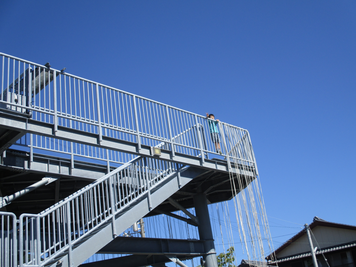 戎邸のそばにある津波がきたときのための高台。ぶら下がっている紐は「ちょうさ(太鼓屋台)」の飾り付けを固定していたもの。前日ちょうさは海に入ったため、撮影時干していた。
