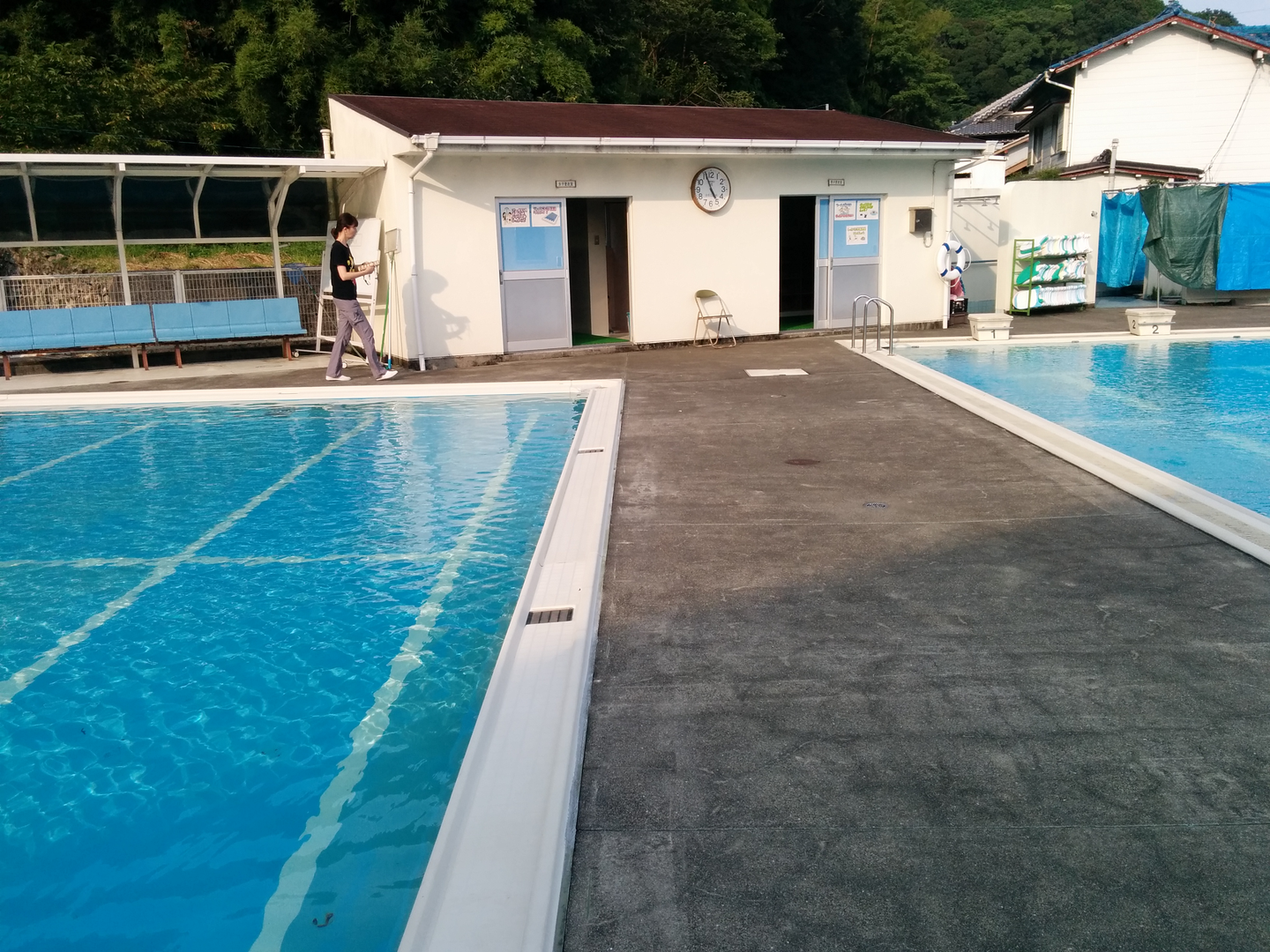 (2016.8 向って右側が6コースの25メートルプール。左側は低学年用の浅いプール)