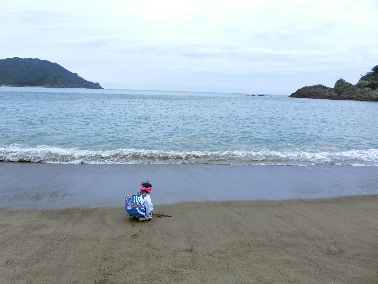 息子は波との追いかけっこが楽しくエンドレスで遊んでいたそう。うみがめの産卵地として有名な美波町。