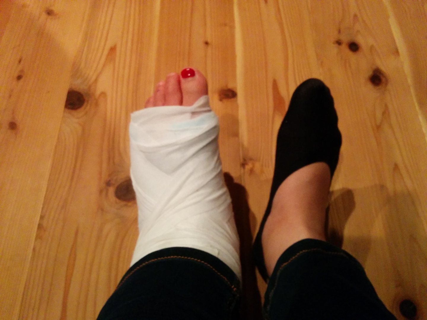 (2016.10 徳島へ行く2日前に足の甲にヒビ。しばらく足をあげて仕事をしていました。これも在宅ワークだから可能なこと?)