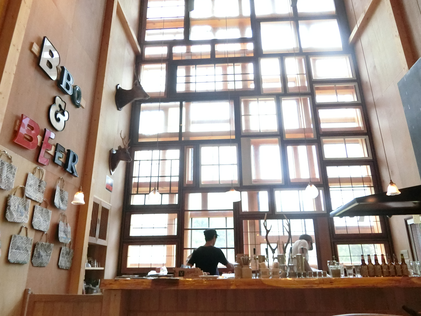 お昼ごはんは、とってもオシャレな『RISE & WIN Brewing Co. BBQ & General Store』へ。こちらのレストラン&ショップは、「生産から流通、販売の過程でなされる過剰な梱包や包装から解放されなければゴミは減らない」という意識の基に作られたお店です。