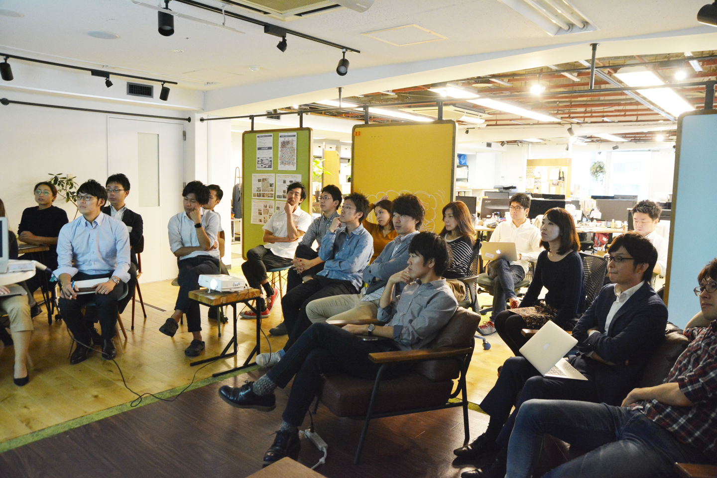 前半は、どんな流れで全員で「オフィス移転プロジェクト」を進めてきたのか?このビルに決まった理由、ヒトカラメディアが考える生きた空間づくり、何回も何回も行なった宿題とワークショップの振り返りなどを共有しました。