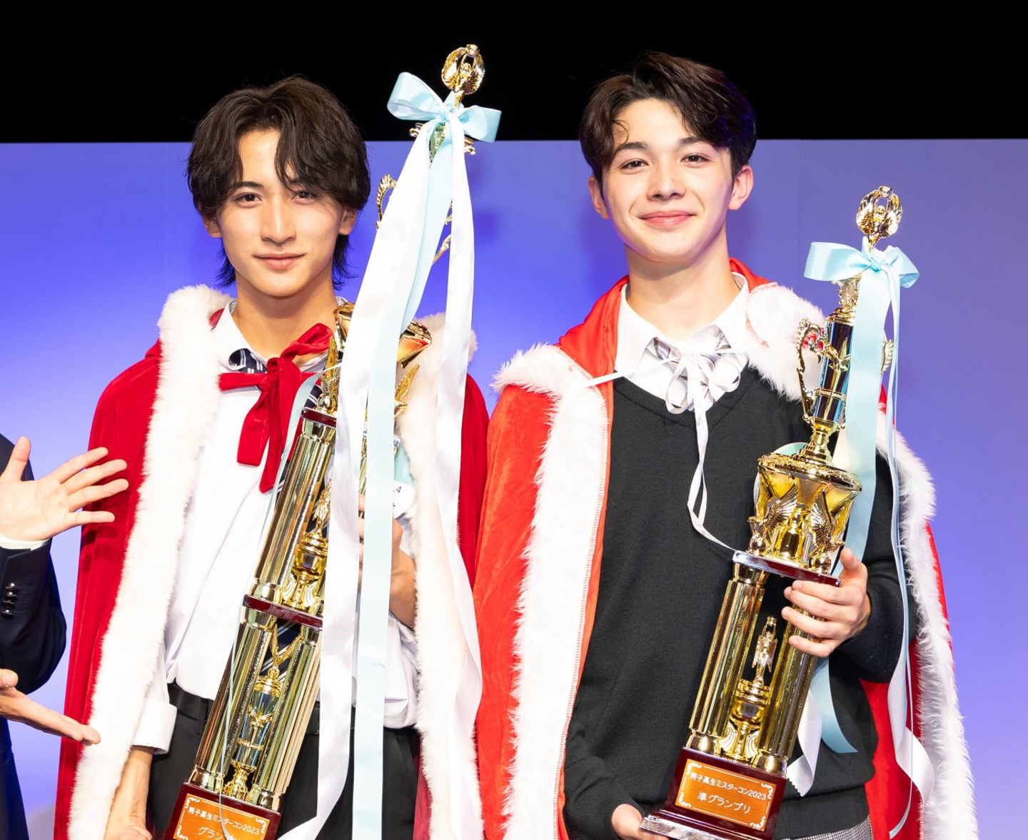 写真左:男子高校生ミスターコン2023グランプリ 植野花道さん
