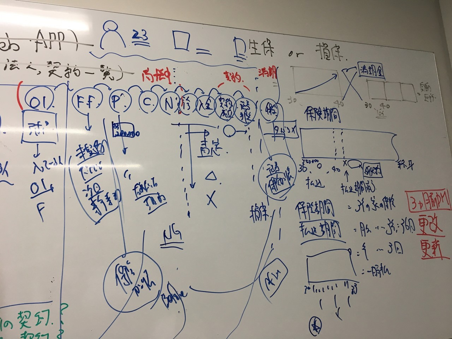 ホワイトボードを利用し、業務理解に時間の大半を費やした。実は、(主にtoBにおいては)デザインの概念・専門知識を知っていることよりも業務理解が最も重要である。
