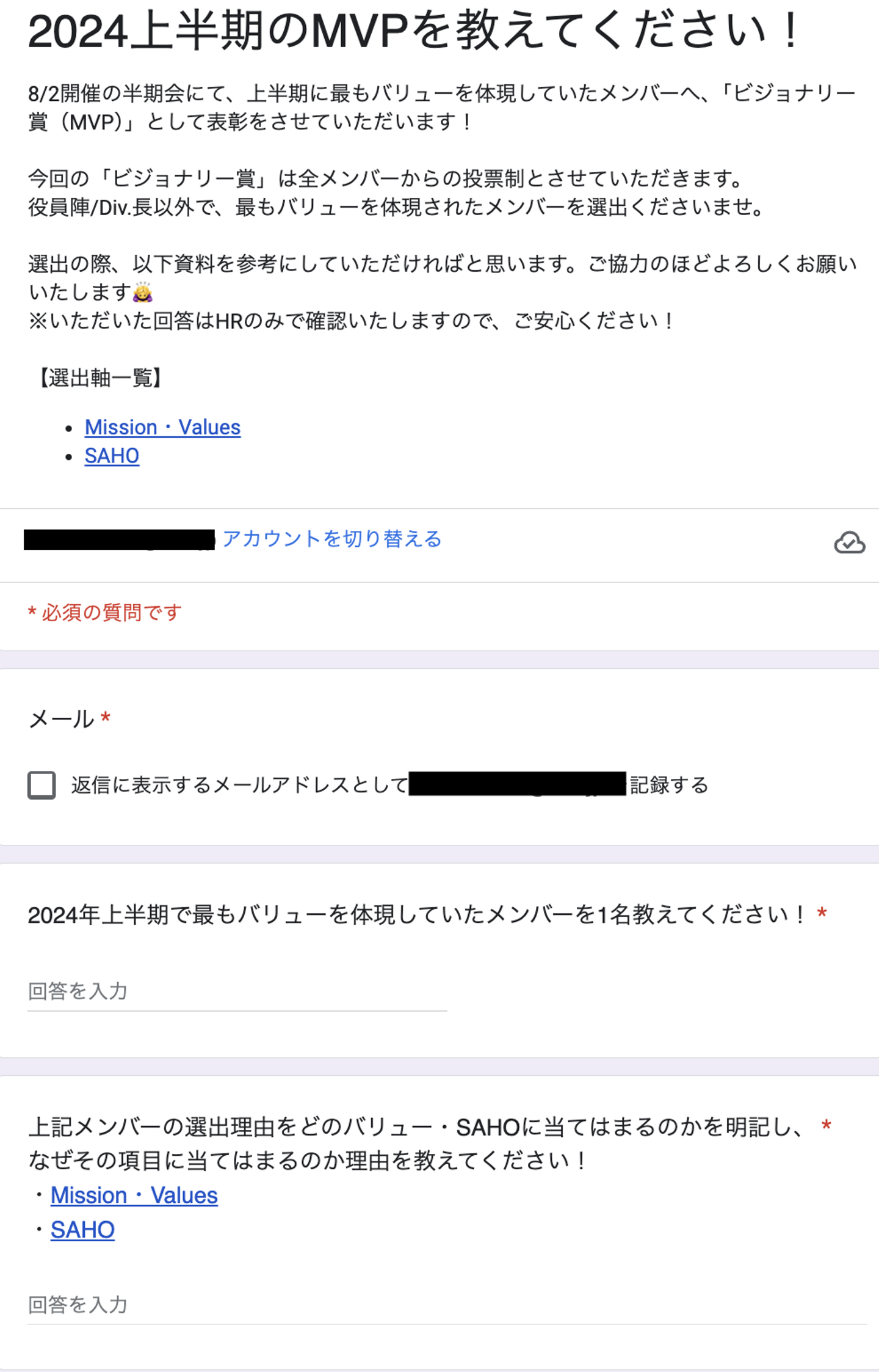 「ビジョナリー賞」に関しては、全社員投票制で、全社会開催の2週間前までに皆様に投票いただいておりました。当社のバリューである、SUIKO/SHINKA/TOKU/KYOSO の4つのValueのどの項目に当てはまっており、なぜその項目に当てはまっているのかを含め投票いただきました。