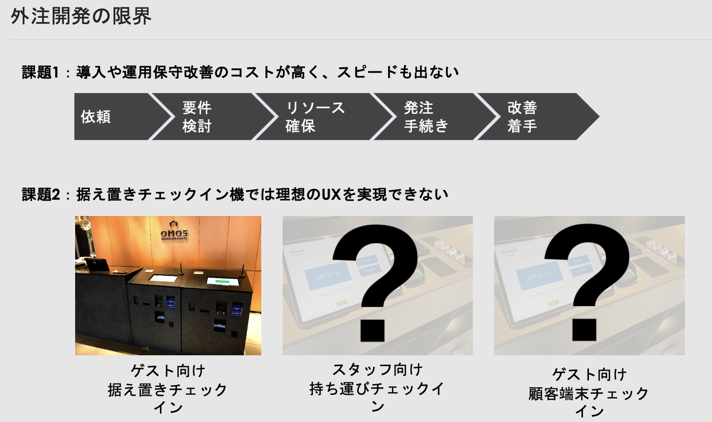 米田:星野リゾートが展開している都市型観光ホテルブランドのOMOへの自動チェックイン機の導入プロジェクトです。実はこの3施設よりも前に運営を始めているOMO5大塚で既に既製品の自動チェックイン機の導入は行っていましたが、理想とする顧客体験を実現するために内製化して自前プロダクトとして作り直すことにしました。