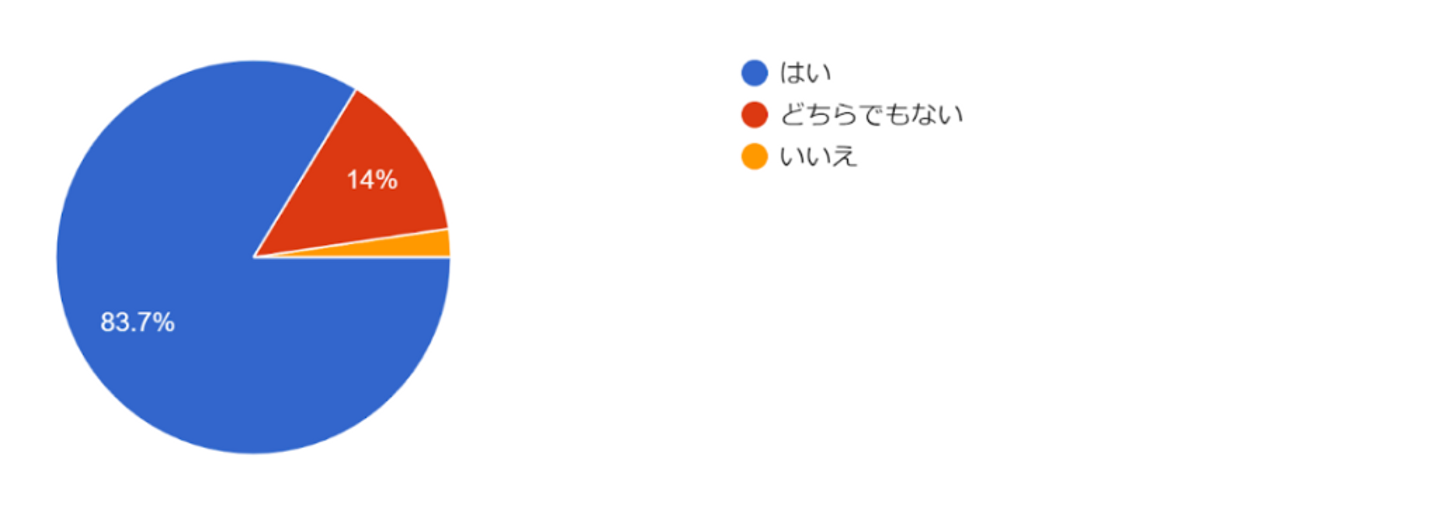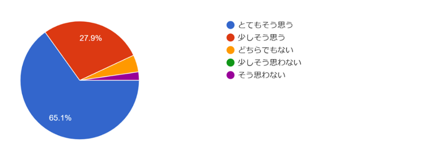 この質問では、HRクラウドが働きやすいと沢山の社員の方が思っていることがわかりました。プライベートと仕事を両立できるというお声があったので、次の質問で社内全体で同様に考える人がどれくらいなのか調べました。
