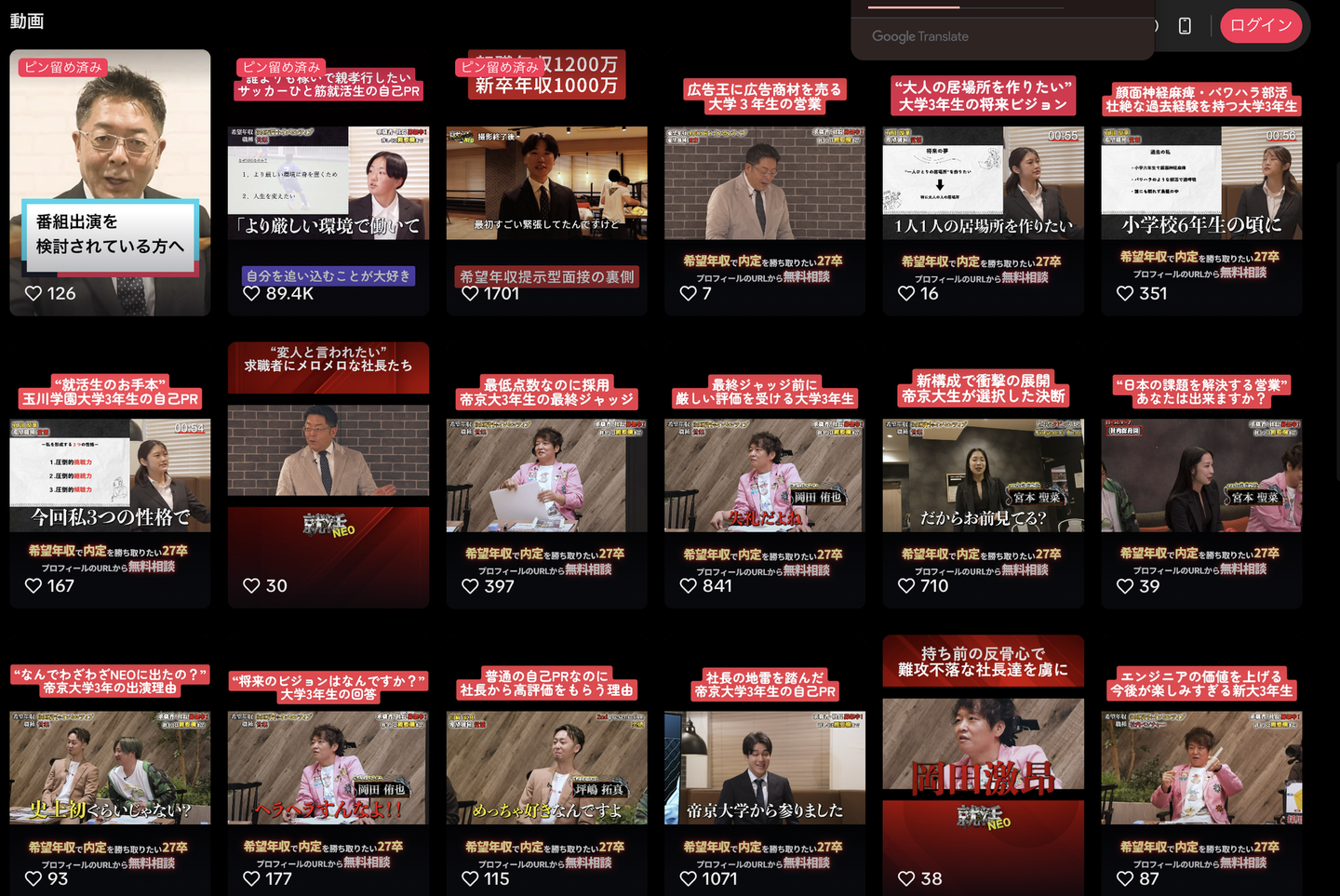 希望年収自己申告型の就活番組です! 新卒の平均年収は200~250万円 能力がある人でも、皆同じ年収でしか雇用されない現状を打破するべく 求職者が直接社長4名に自己アピールをする場が設けられています。 ・最高内定年収1,200万円 ・子会社の社長へ就任 就活NEOに出演することで、 未来の明るい若者がチャンスを掴むことができます。 求職者の人生が変わるリアルな瞬間を是非ご覧ください! 求職者の方、出演を希望される社長は 下記リンクからご相談受付中です!