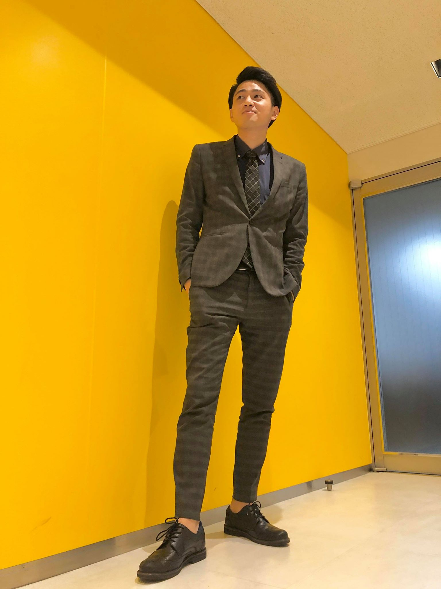 珍しいカーキ色のスーツを着ていたり、 好きな色の青でまとめていたり、、、