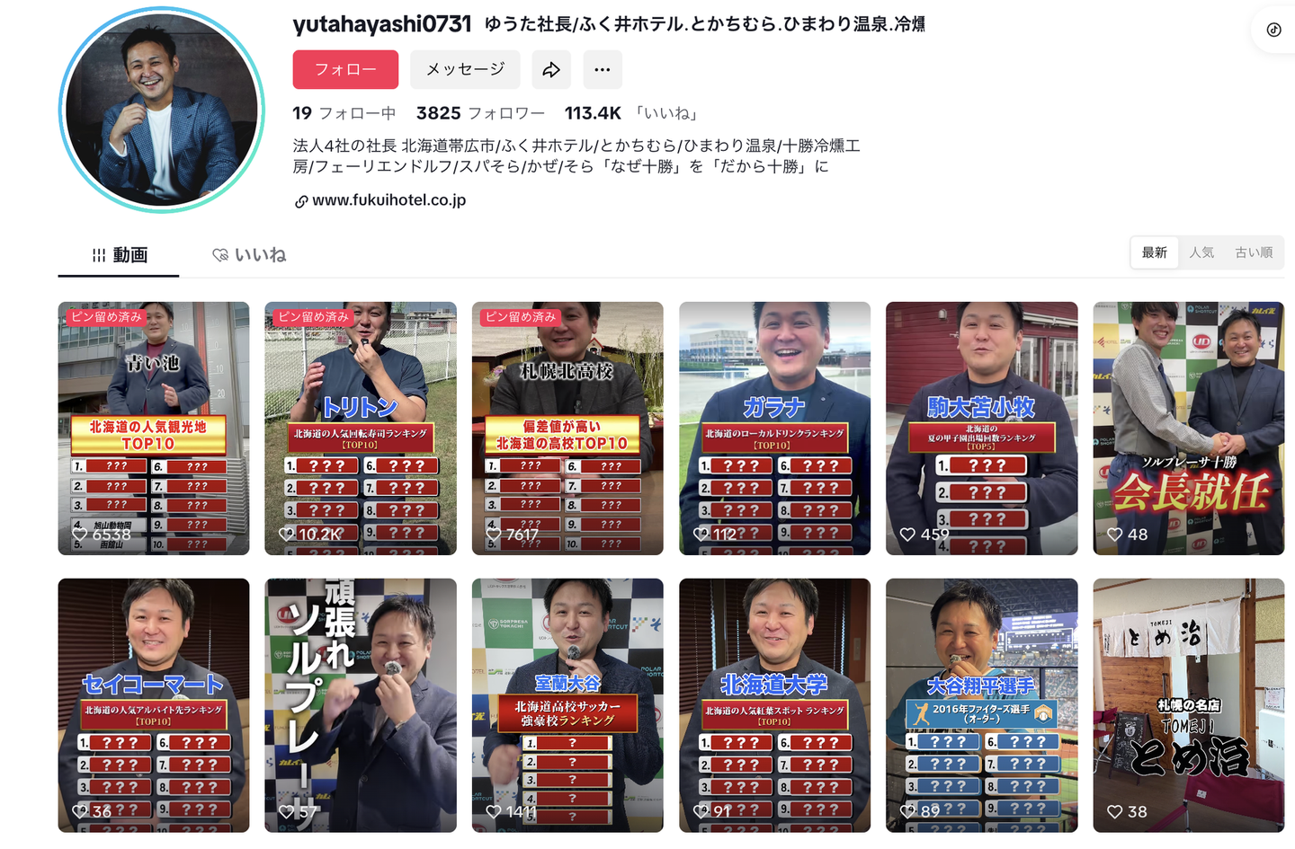▼代表、TikTokアカウント