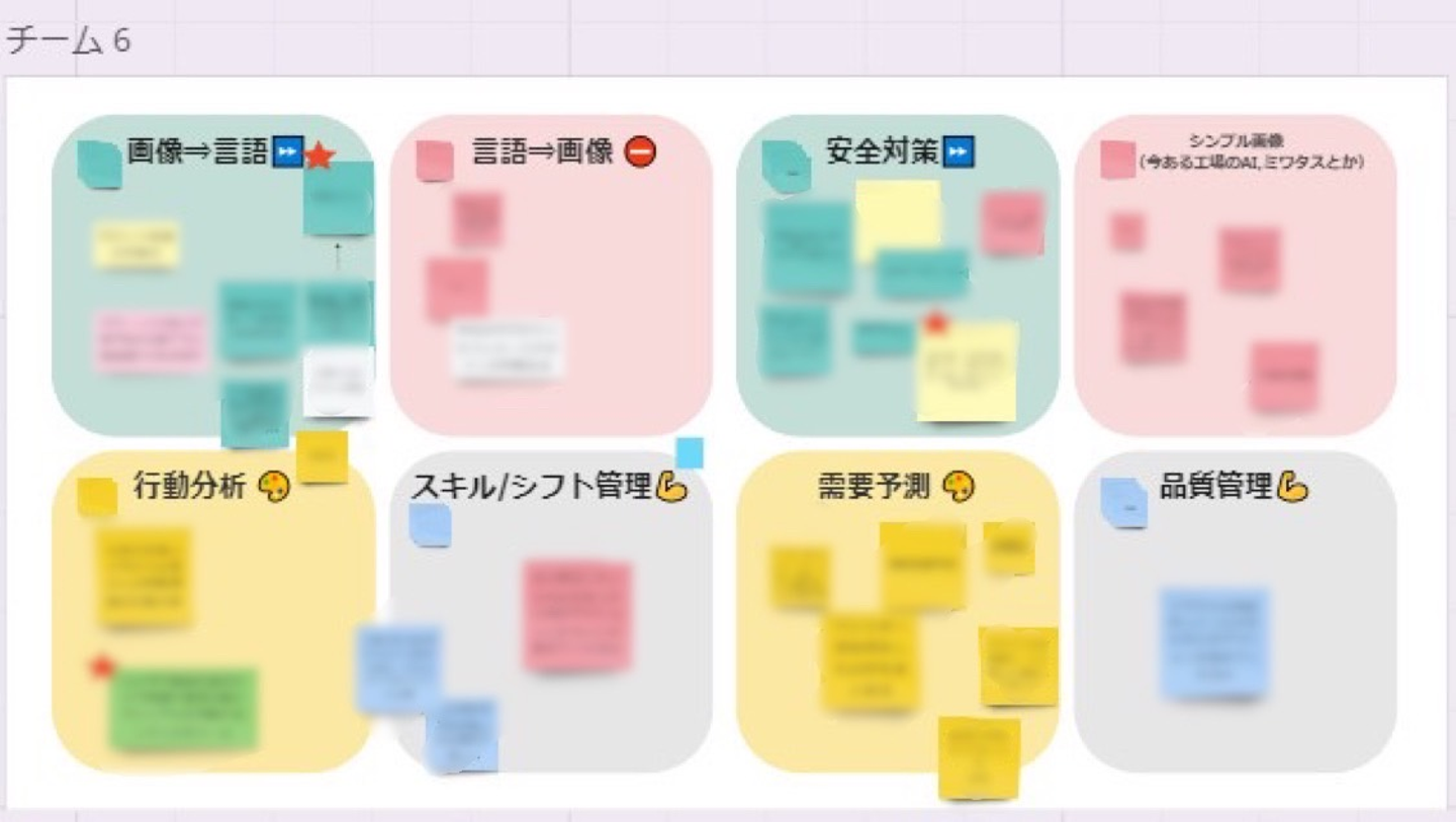 このツールを使うのが初めての社員もいましたが、次第に使い方にも慣れて、ぺたぺたと付箋が増えて様々なアイデアが集まりました。