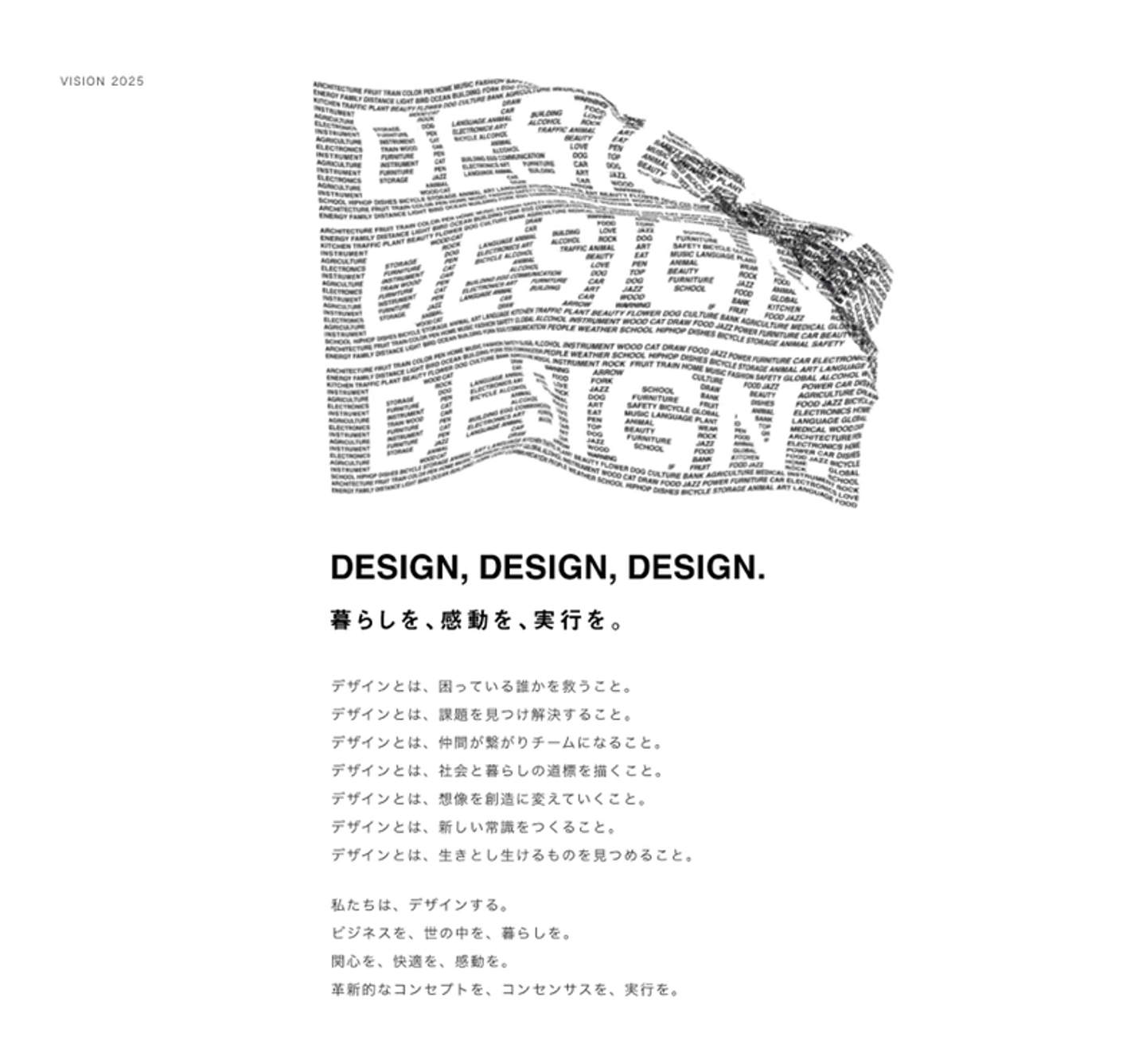 私たちは、2025年までの中期ビジョンとして「DESIGN, DESIGN, DESIGN. 暮らしを、感動を、実行を」を掲げています。