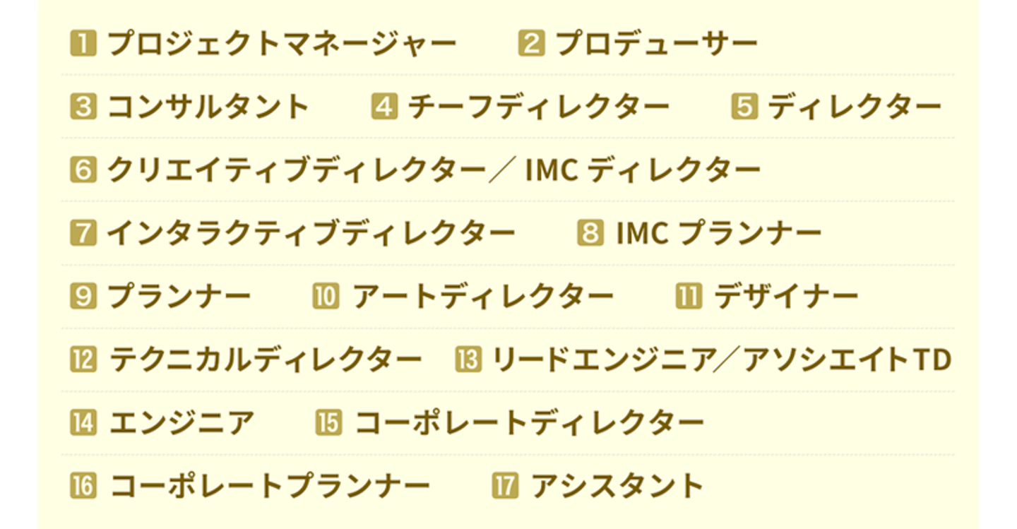 デジタルコミュニケーション施策の企画立案・提案、プロジェクト全体をまとめていく、プロデューサーやディレクターなど