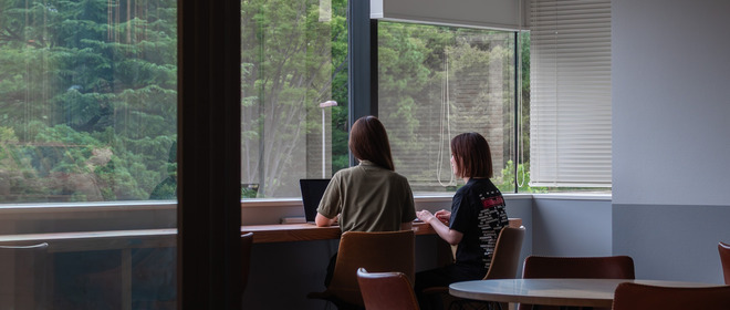 港区青山に構えるオフィスは開放的で、青山御苑の緑を一望でき、バーカウンターやカフェスペースはゆったり過ごすことができます。