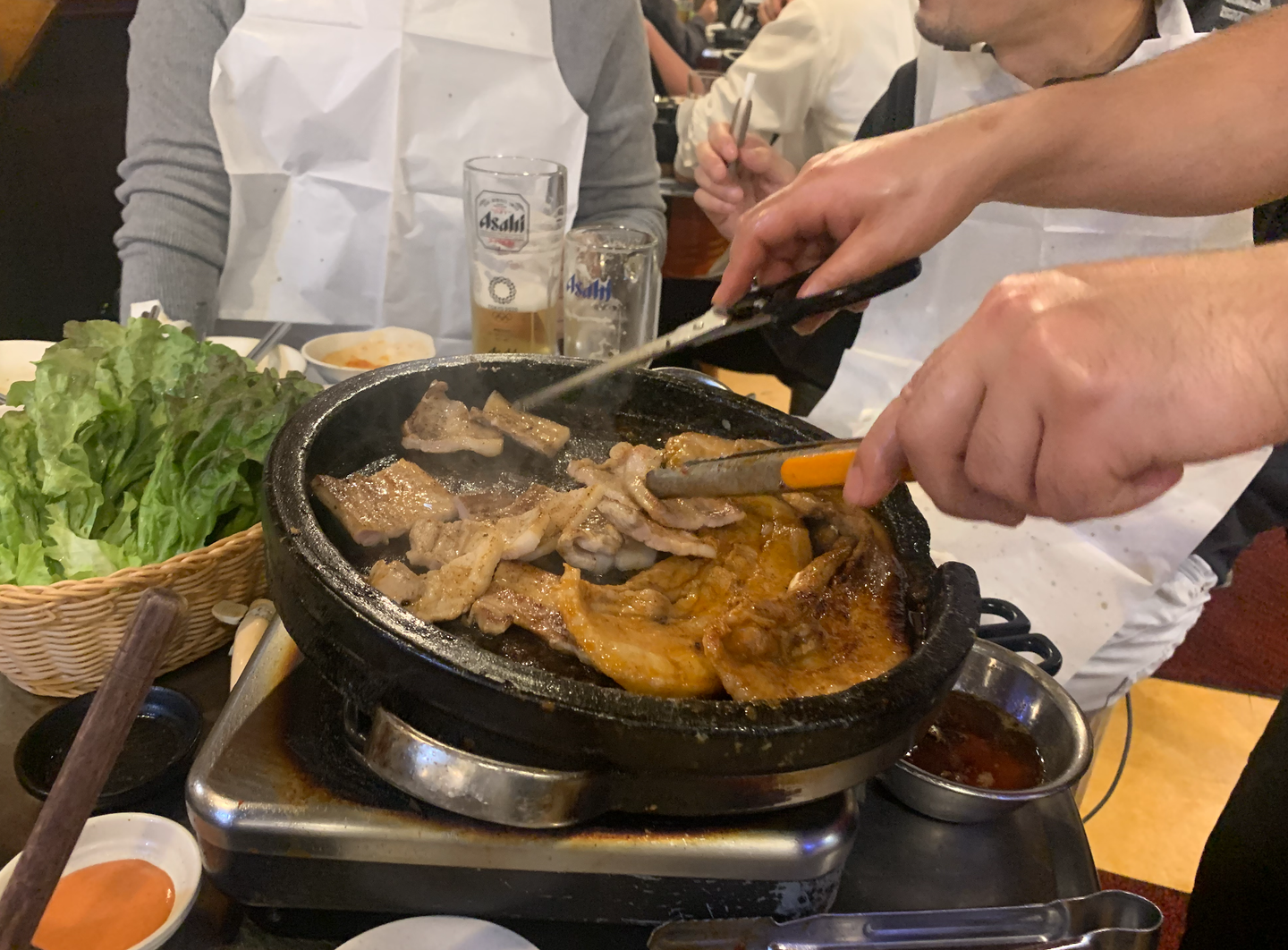 先輩(みもさん)が韓国料理が好きということでサムギョプサルを