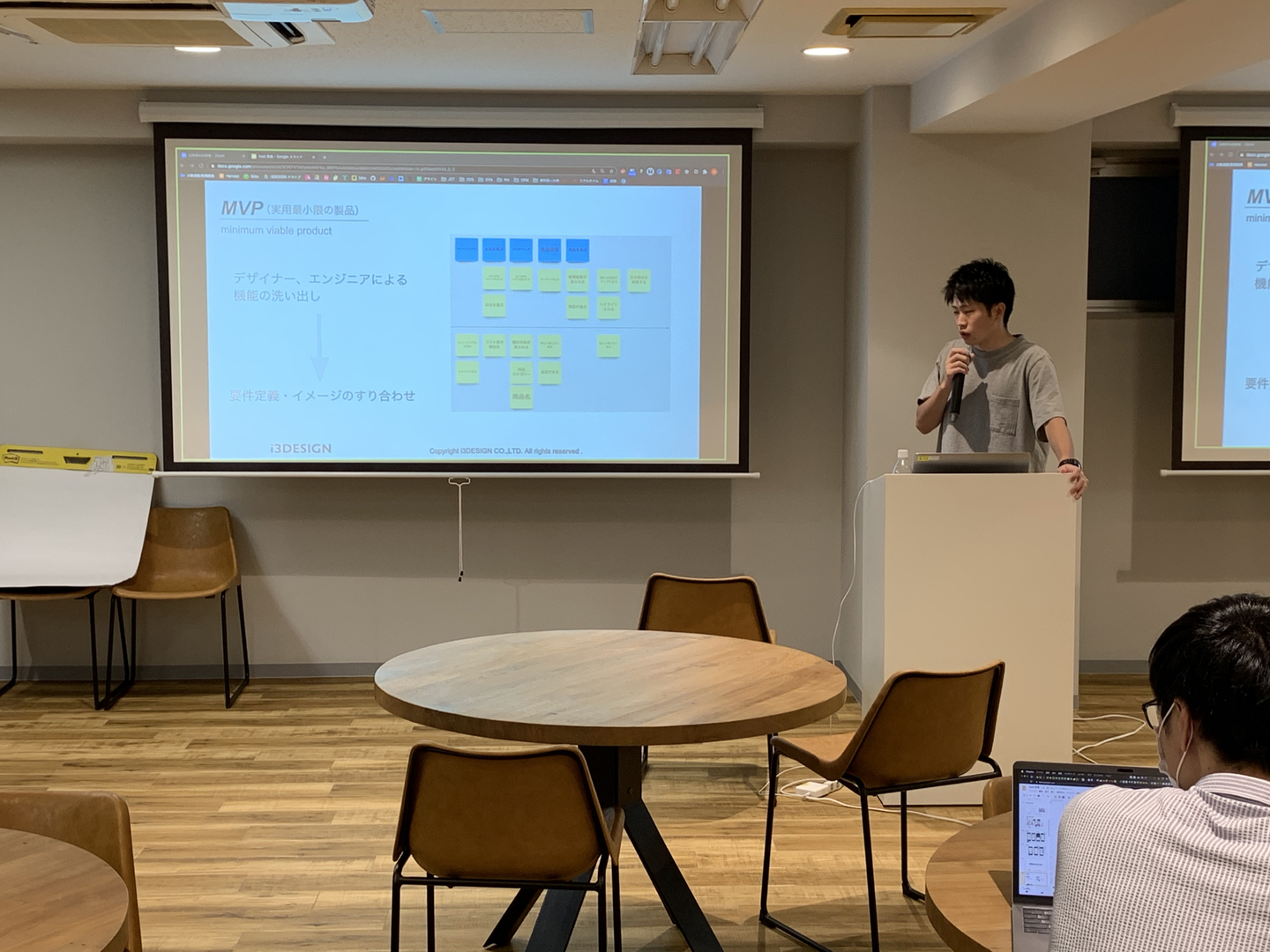 はじめに、デザイナーより今回のアプリデザインを考えるに当たっての背景、ペルソナ設計、トンマナ設計、そしてデザインに関して上手くいった点や課題なども含めて細かく説明してもらいました。