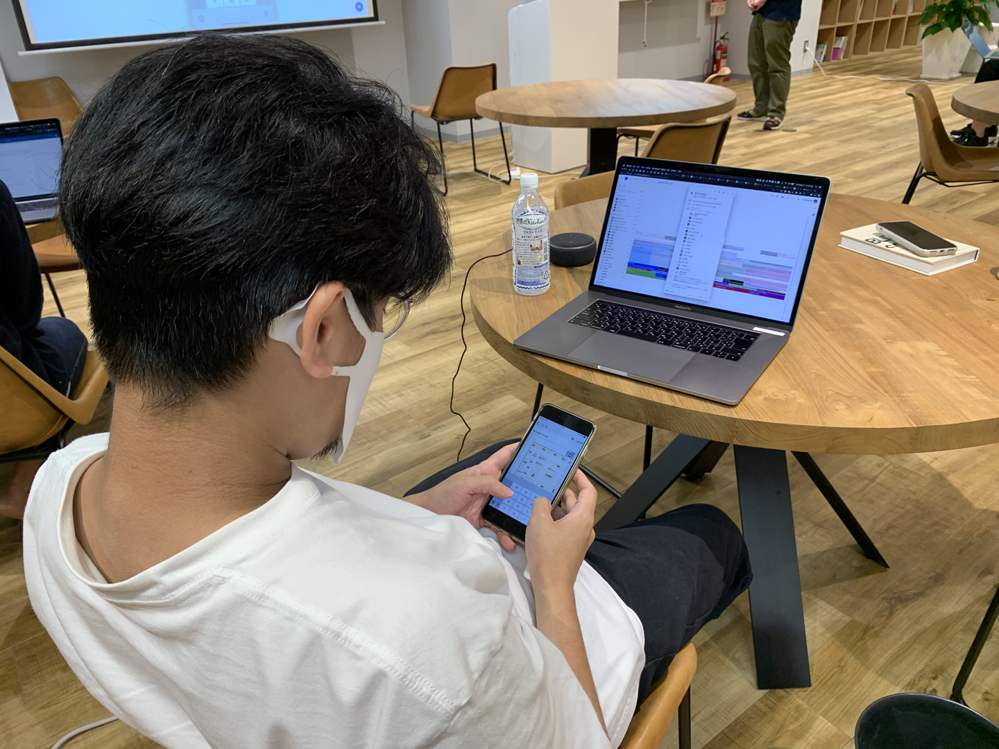 実際に開発したアプリを実機で触ってみました!まだ想定していたところまでは完了していないと話にはありましたが、実際にアプリとして動くところまで出来ていたので驚きました!!