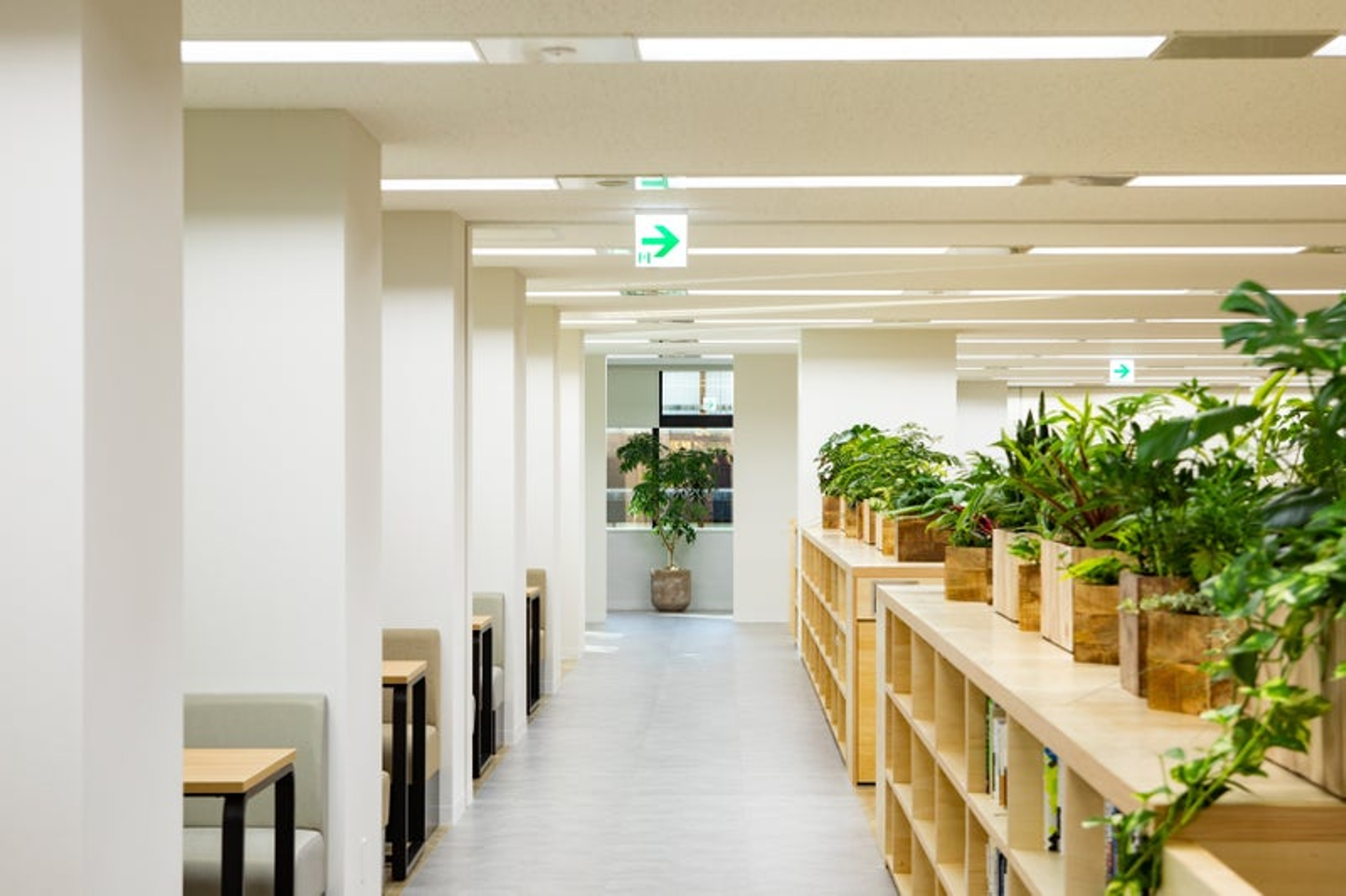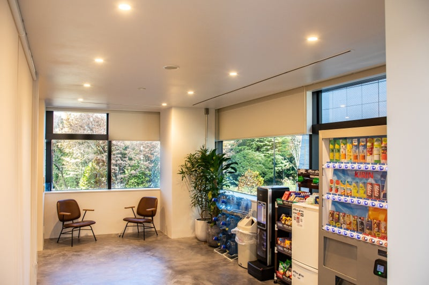 執務エリアへと繋ぐパークエリアにはオフィスグリコを完備しました。