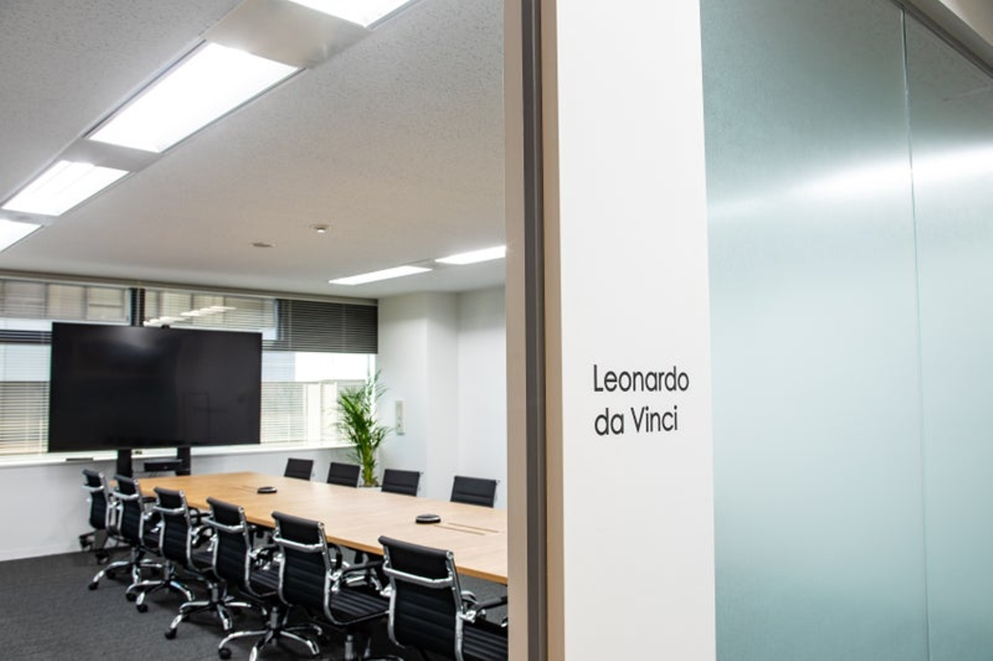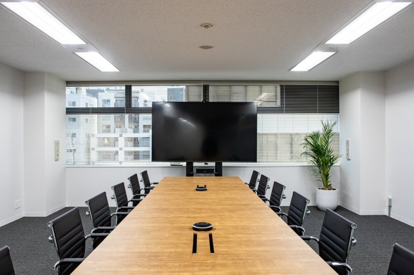 12名もの椅子を設け、大画面での会議が可能となった大会議室は2つご用意がございます。