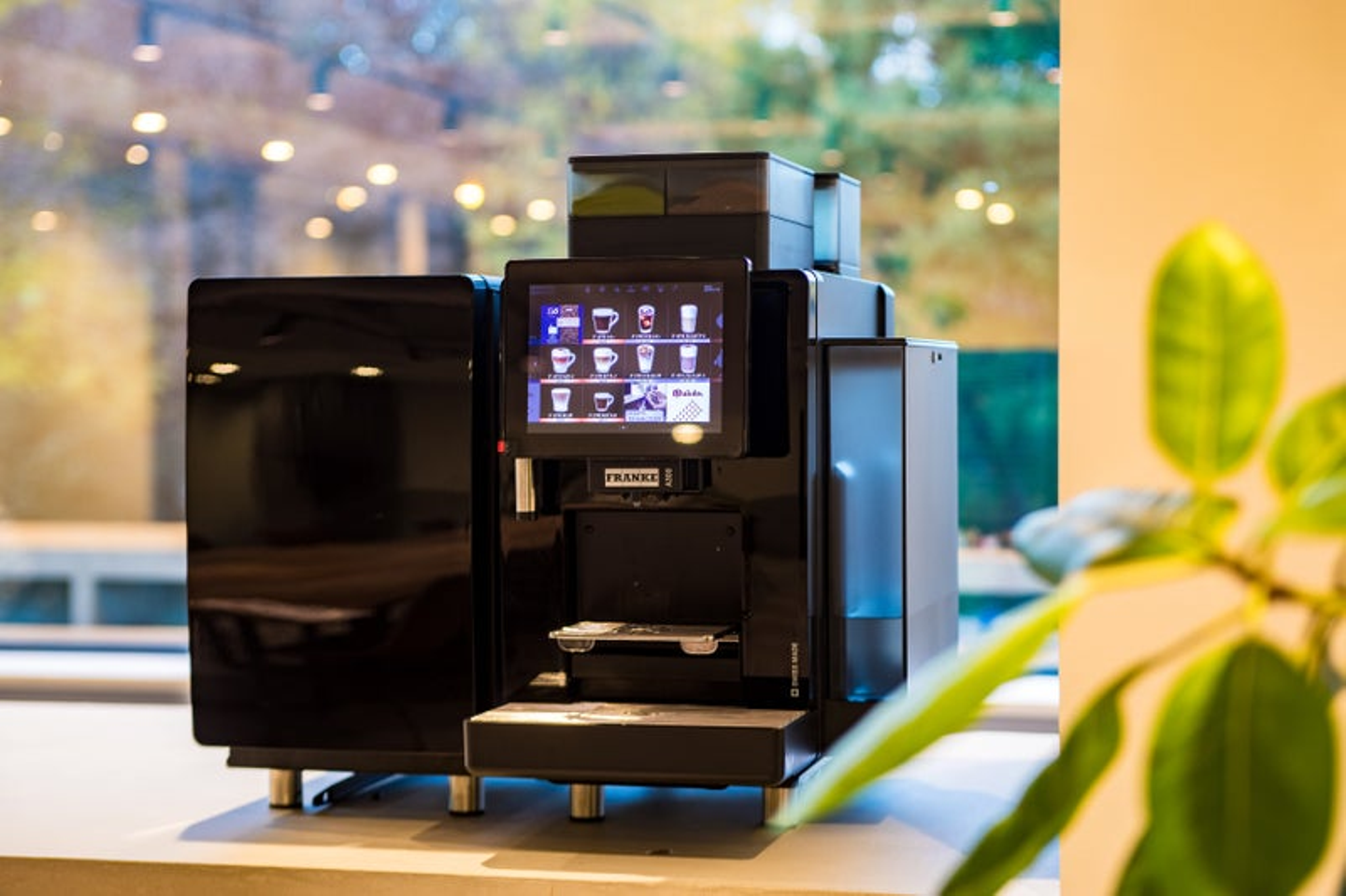 福利厚生で新たに導入されたコーヒーマシンは、平日早朝に毎日メンテナンスがあるので常にフレッシュで美味しいコーヒーやカフェラテ等が楽しめます。