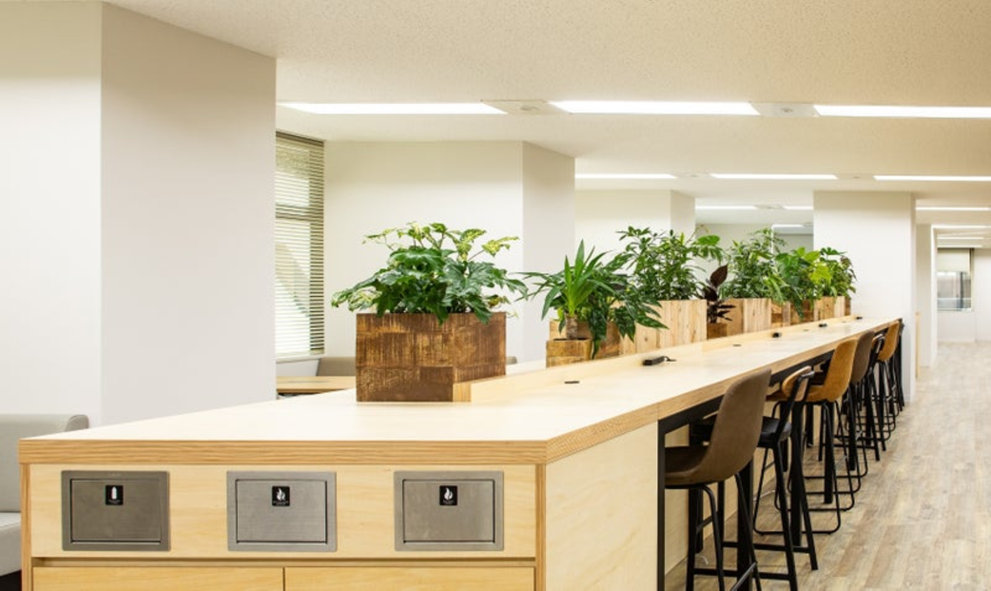 そこには社員同士の交流を促進するカフェエリアが皆様をお迎えします。