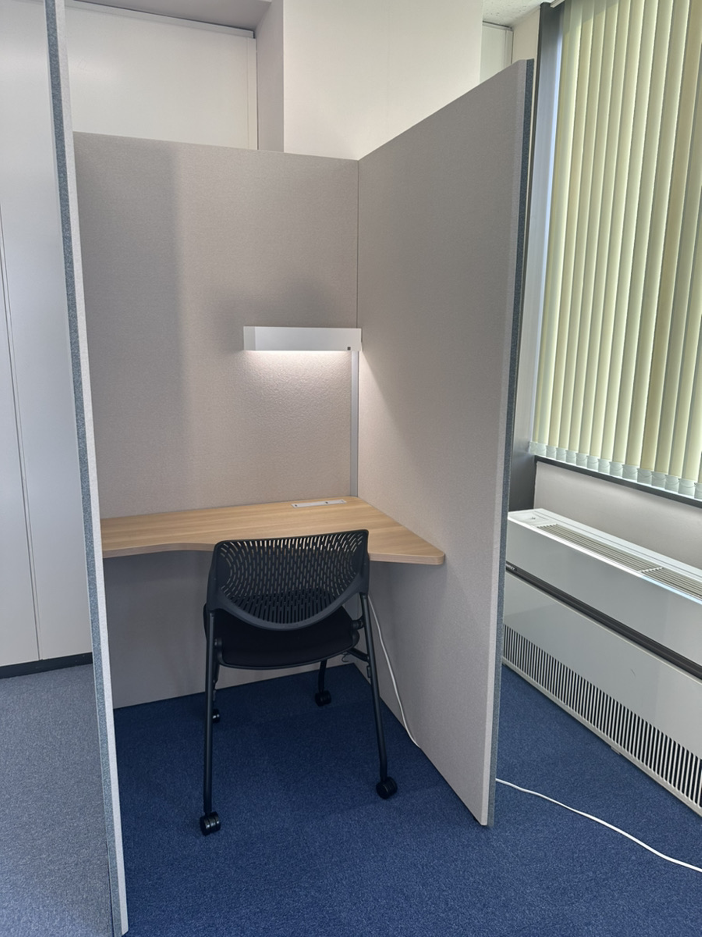 吸音効果のある面談用ボックスが計3つ配置されています。