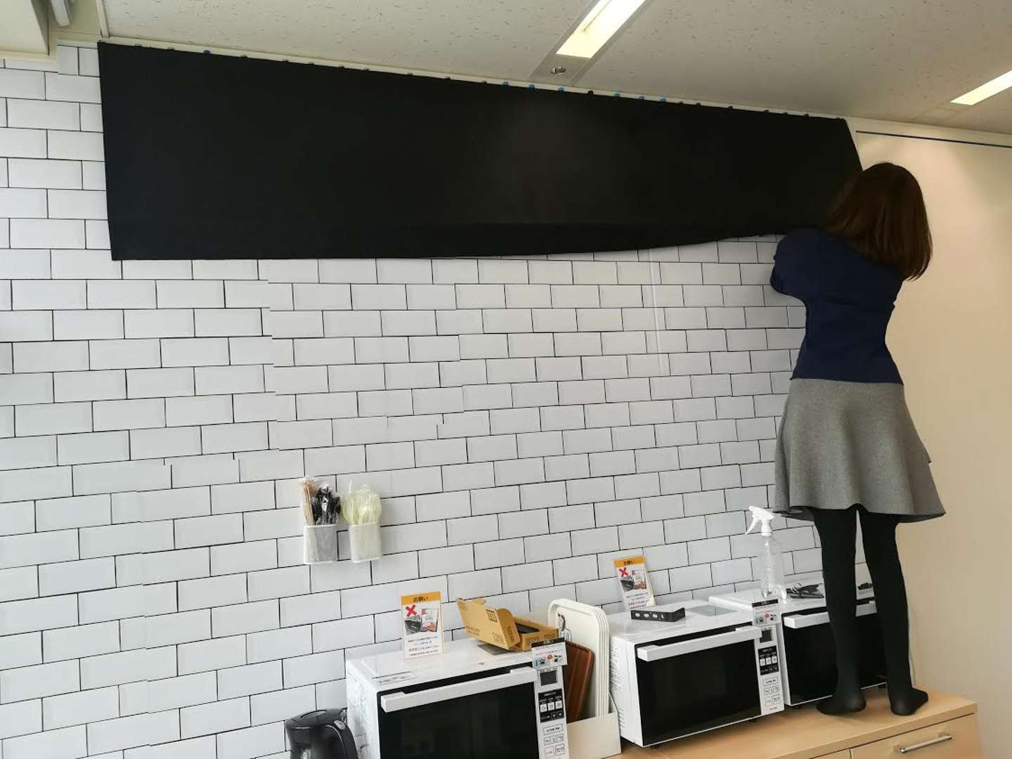 (おしゃれ空間にするために社員で壁紙を貼りました!コスト削減!)