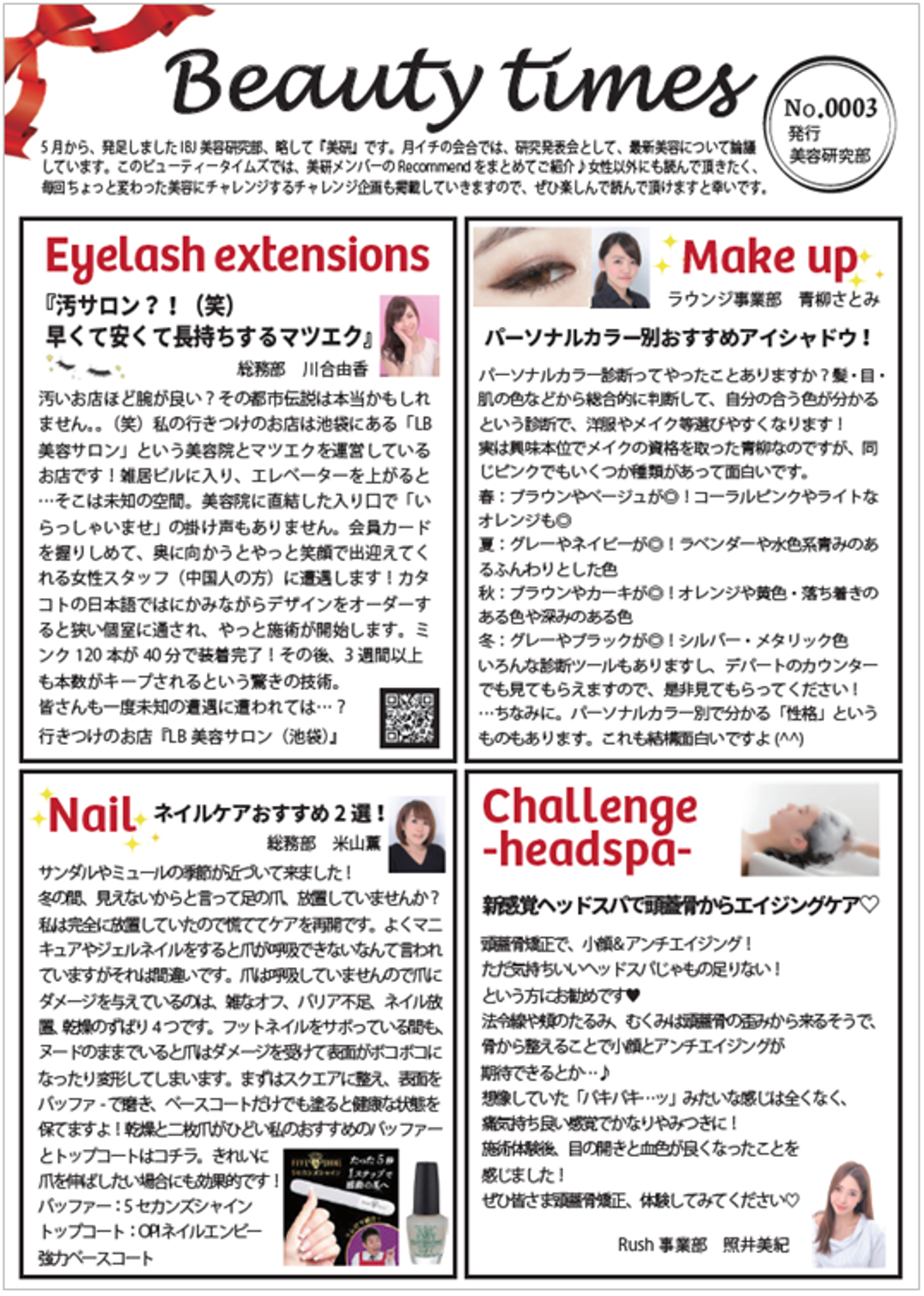 ネイルや、エステ、化粧品、得意分野や好きなものは違えども、美を愛する心はみな同じ。