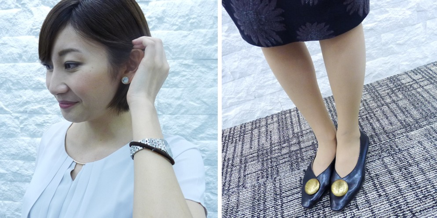 服にあわせて髪をアレンジする器用さと、流行を取り入れながらも足立さんらしいスタイルで