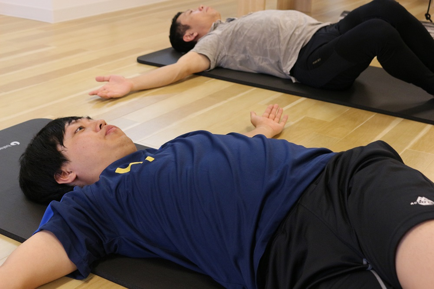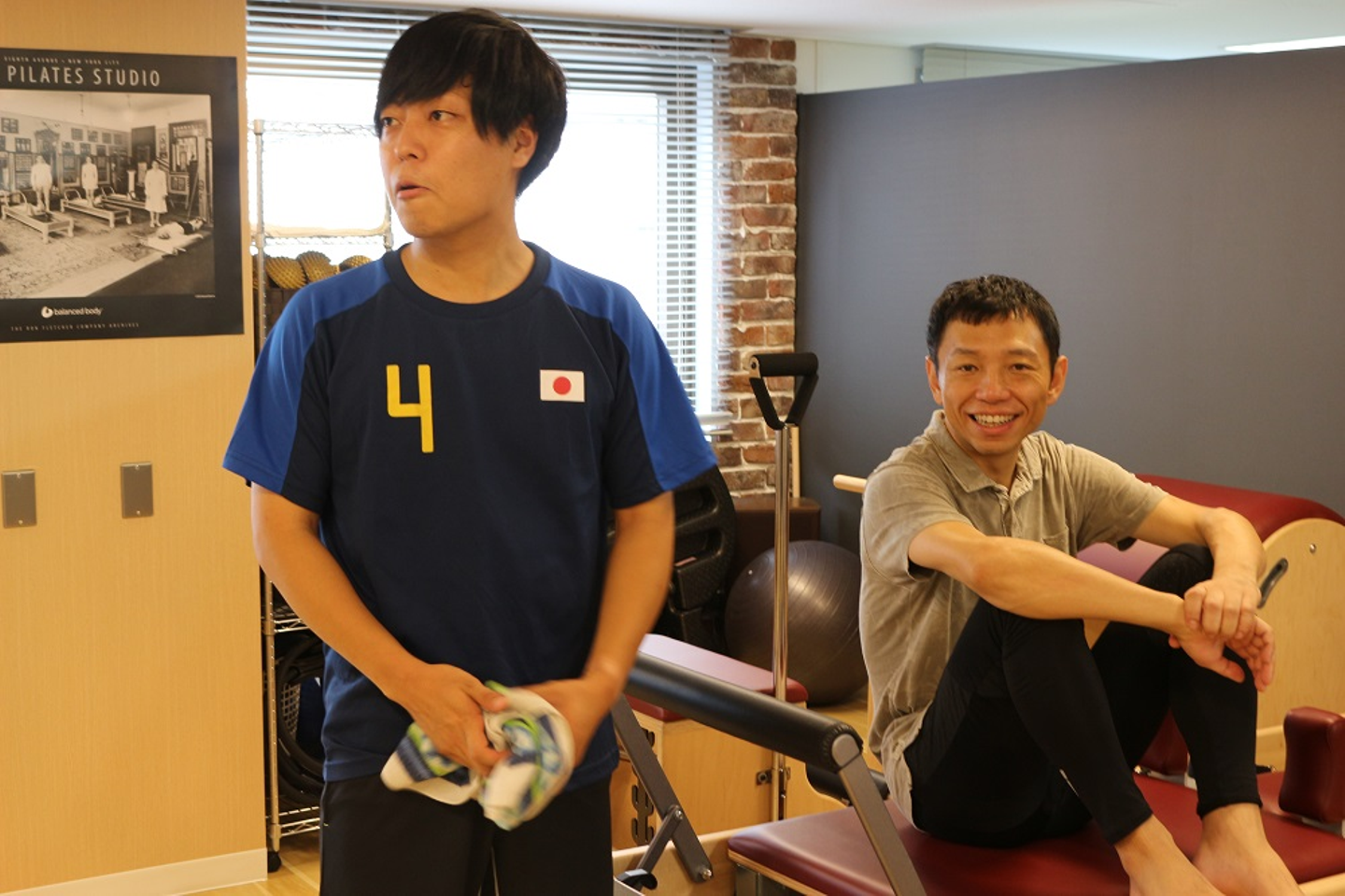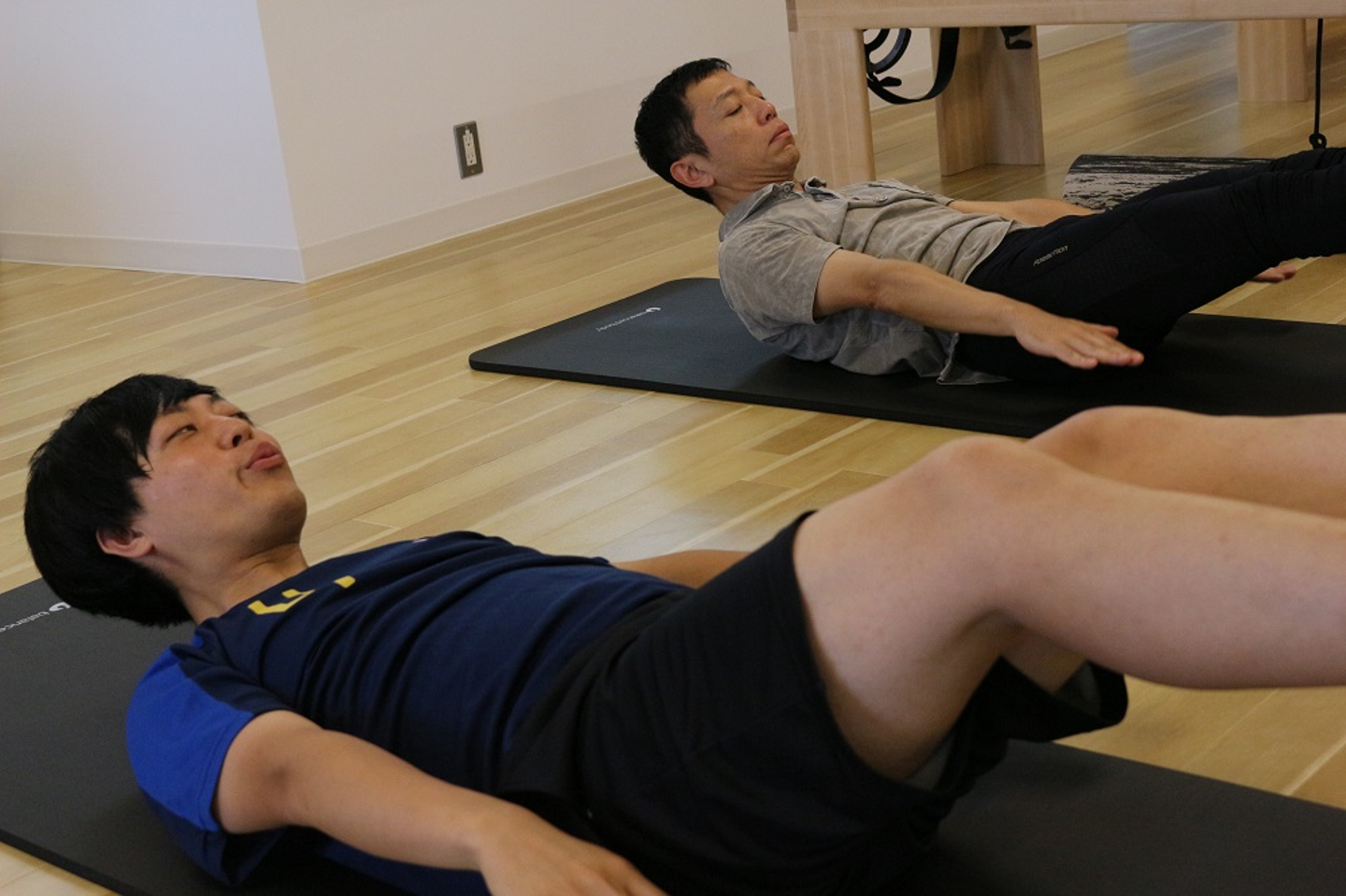 「あまり汗をかかずに鍛えられるから、仕事前に丁度良いんだよね。朝ピラティスをしておくと、デスクワーク中にも背筋が伸びる。ピラティスを始めて、2~3cm身長が伸びる人もいるくらいピラティスの姿勢改善力はすごいんですよ。」と社長。