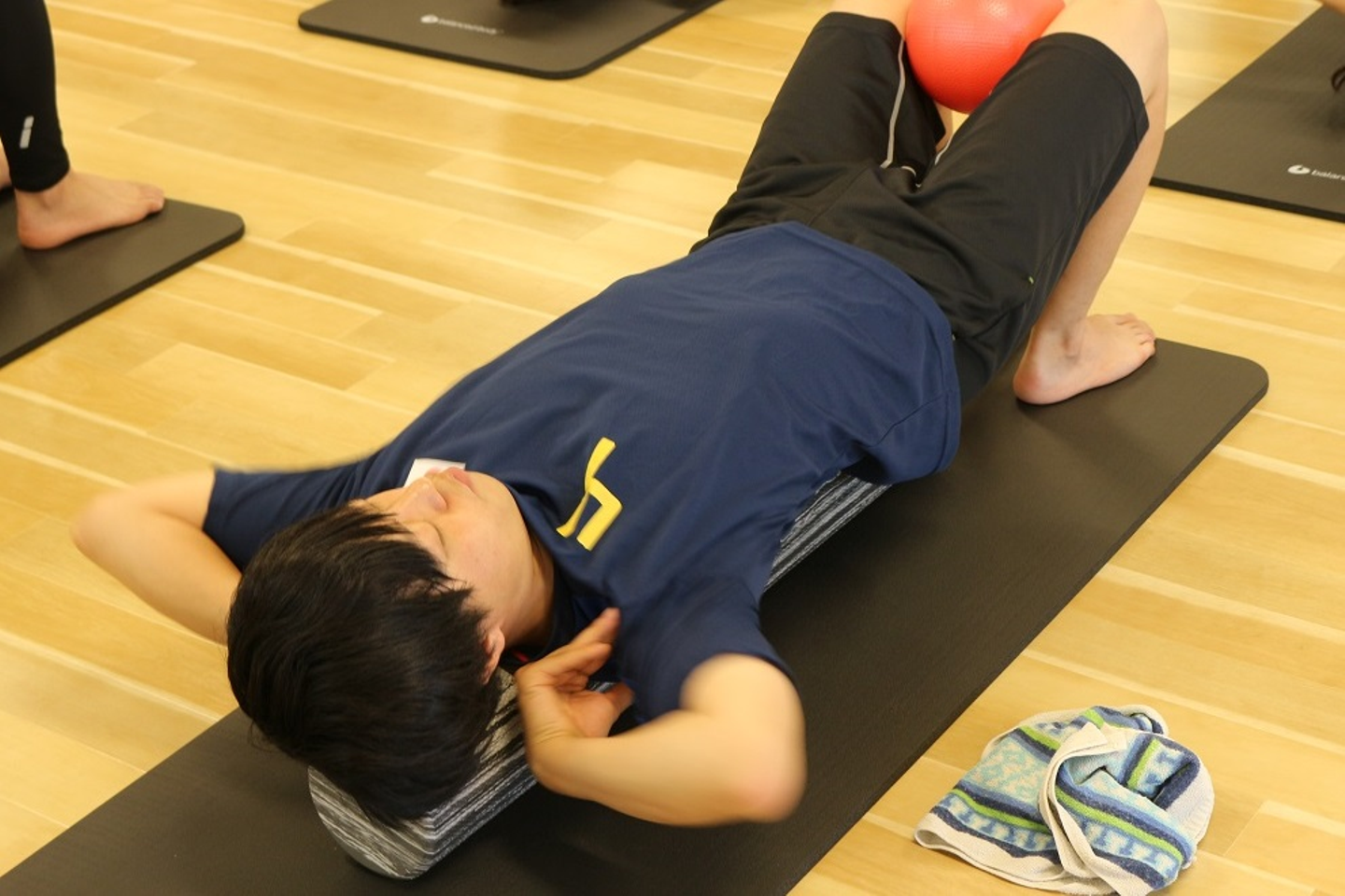 まずは、ストレッチポールを使って身体を伸ばしていきます。