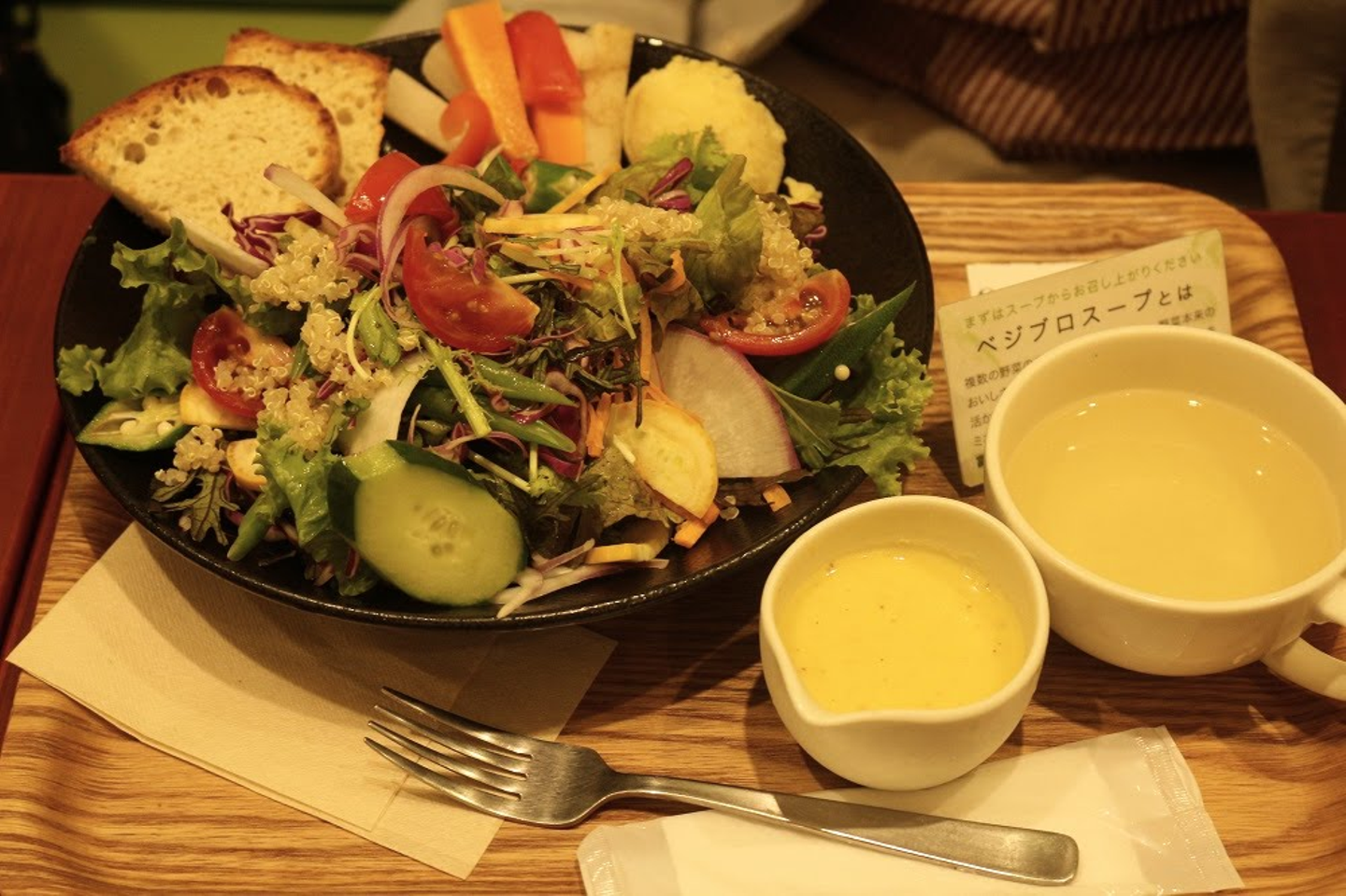 着いたのは、女性客ばかりの超ベジタリアンなカフェ風レストラン(笑)