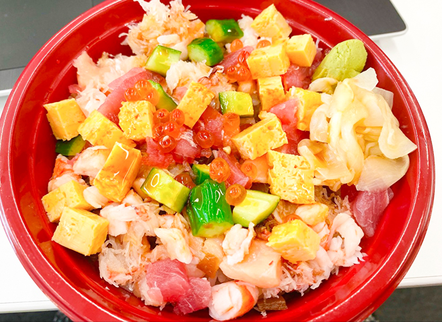 「最近テイクアウト始めたらしい」と聞いて行ってみたお寿司屋さん。店内はカウンターのみの立ち食いなので女性は入りにくいかもしれませんが、テイクアウトなら気にせずに食べれる😊お昼から贅沢に、ばらちらし丼(600円)
