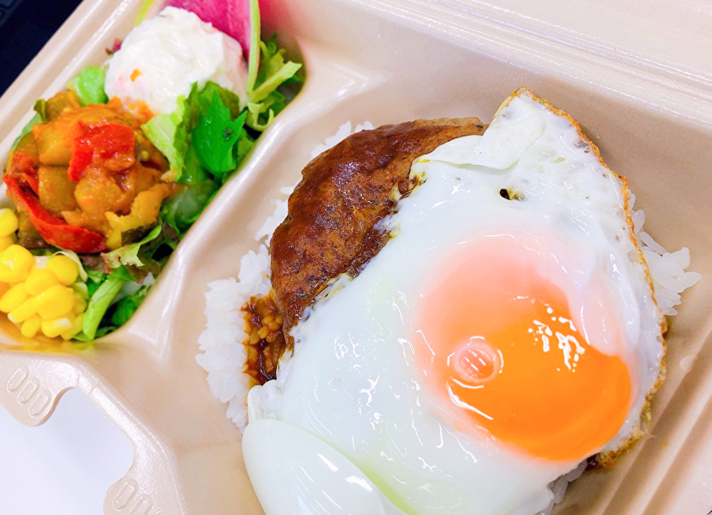 都庁前駅そば、本社から4分の新宿センタービルにあるお洒落なCaféで、ロコモコをテイクアウト。イチ押しは石焼ハンバーグらしく、ロコモコのハンバーグも美味しかったです!野菜も添えられていてバランス◎