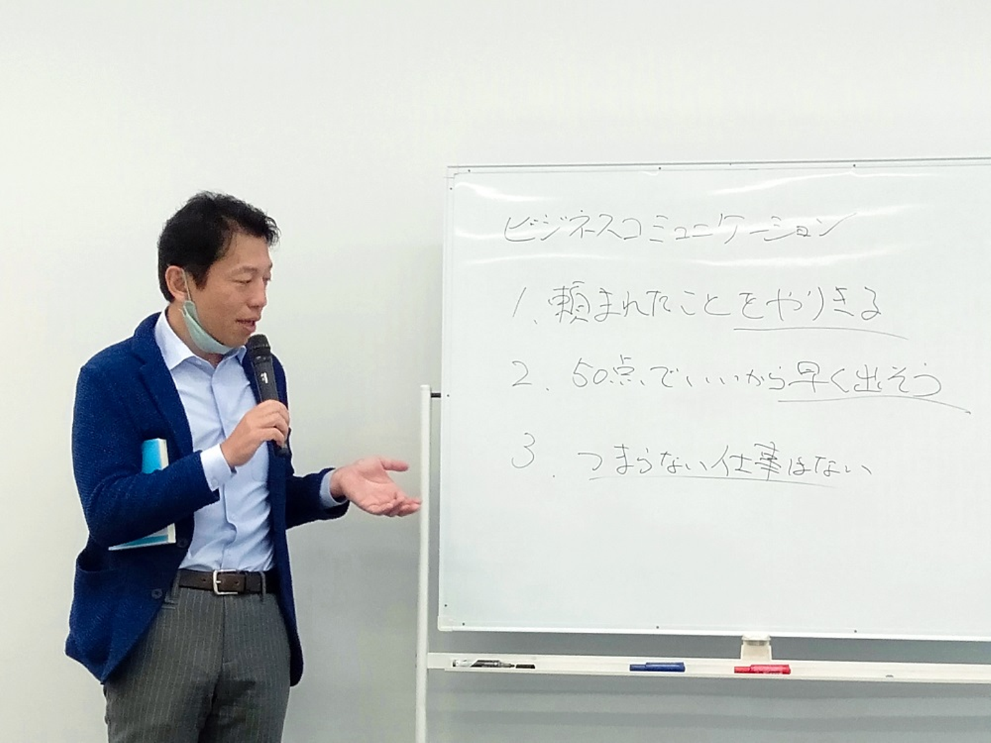 「皆さんには、『この人と話すと面白い』『また話したい』と思われるような人になってほしいです。そのために、仕事の面白さについて、人に語れるようになれると良いですね。自分の仕事はこういう意義があるのだと、相手にとって面白く語れることが大事だと思います。