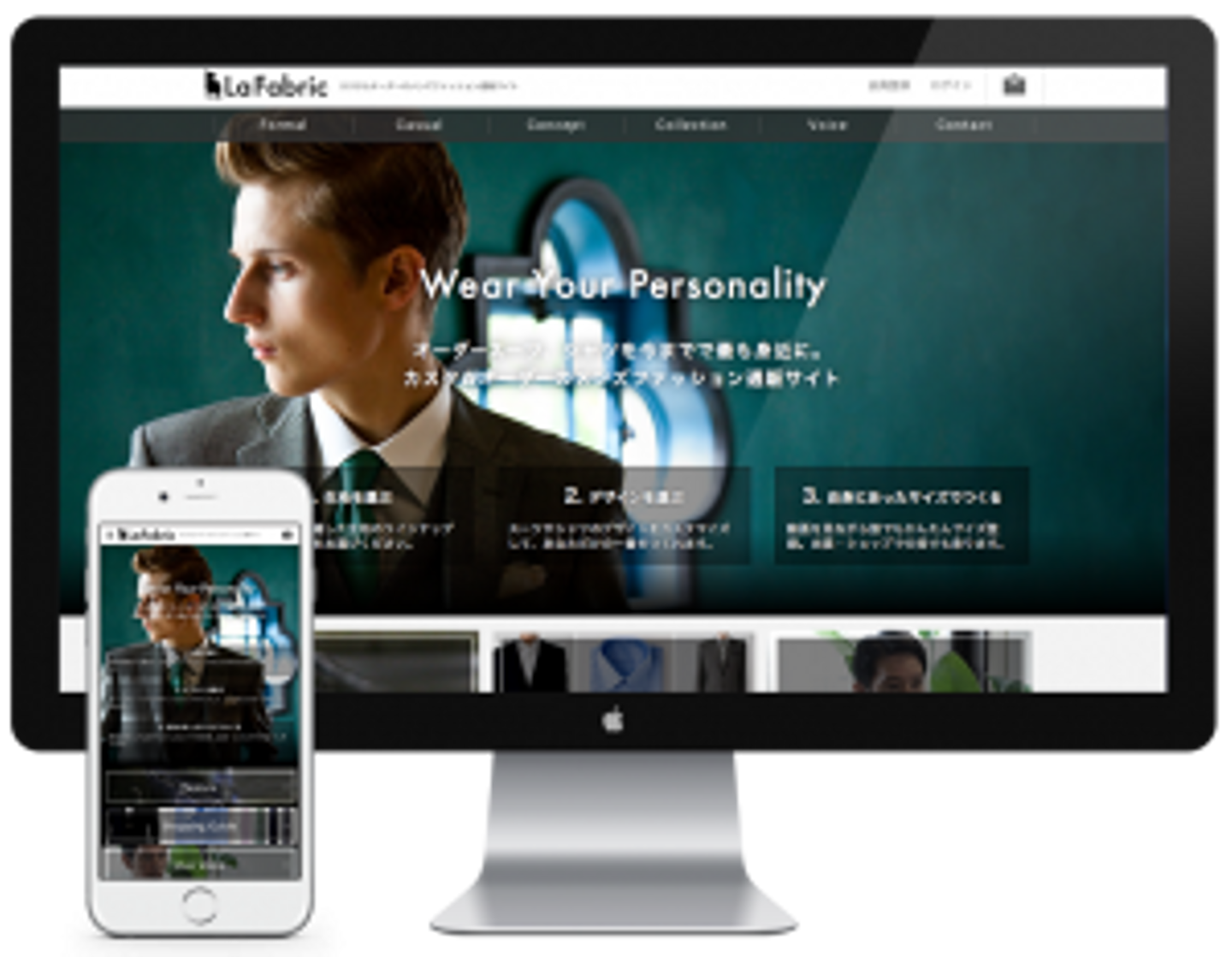 継続的にサービスに関わっていくと、サービスが成長し、事業や会社が成長するにつれて、rootの関わり方も変化してきます。カスタムオーダーのメンズファッションサービス「LaFabric(ラファブリック)」は、チームが2、3人のころからお手伝いしています。「LaFabric」はユーザーひとりひとりオーダーメイドで商品を作成するサービスなので、在庫を抱えず工場から直通で商品を送るというビジネスを展開しています。既製服ブランドのECサイトやZOZOTOWNのようなファッションモールとの違いを、どうしたらわかりやすく伝えていけるか、サービスのコンセプトや訴求ポイントの打ち出し方をディスカッションし、プロダクト戦略からUI/UXデザインまで行いました。最初は、rootがすべてのデザインワークを担当させていただきながらプロダクトが起動に乗るタイミングから内製化をしていただくよう働きかける動きをしています。同社にデザイナーが入社した後も、rootは引き続き関わっています。
