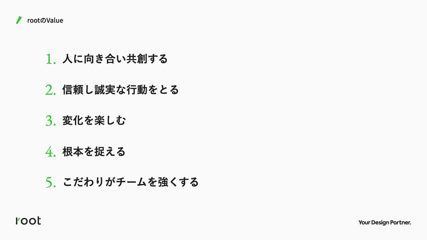 最終的に、rootでは5つのバリューで価値観をまとめました。