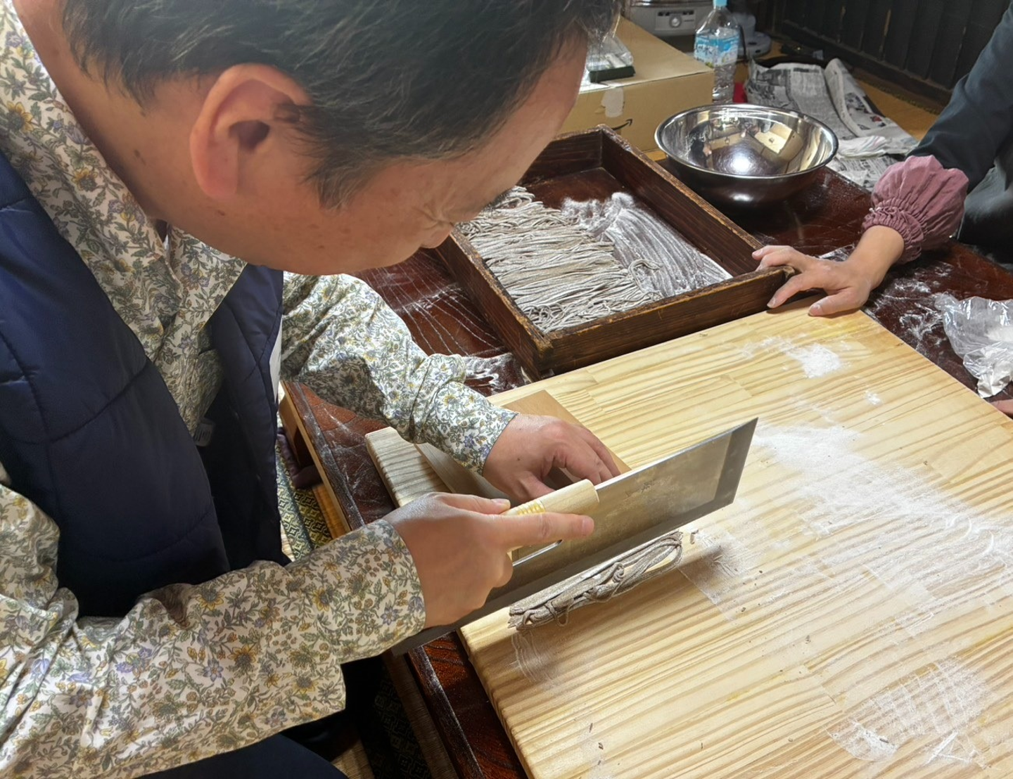 そば粉とつなぎの割合を変えることで、そばの風味や味重視にするか、切れにくく作り易いそばにするか、など色々なそばに関する知識を得ることもできました。