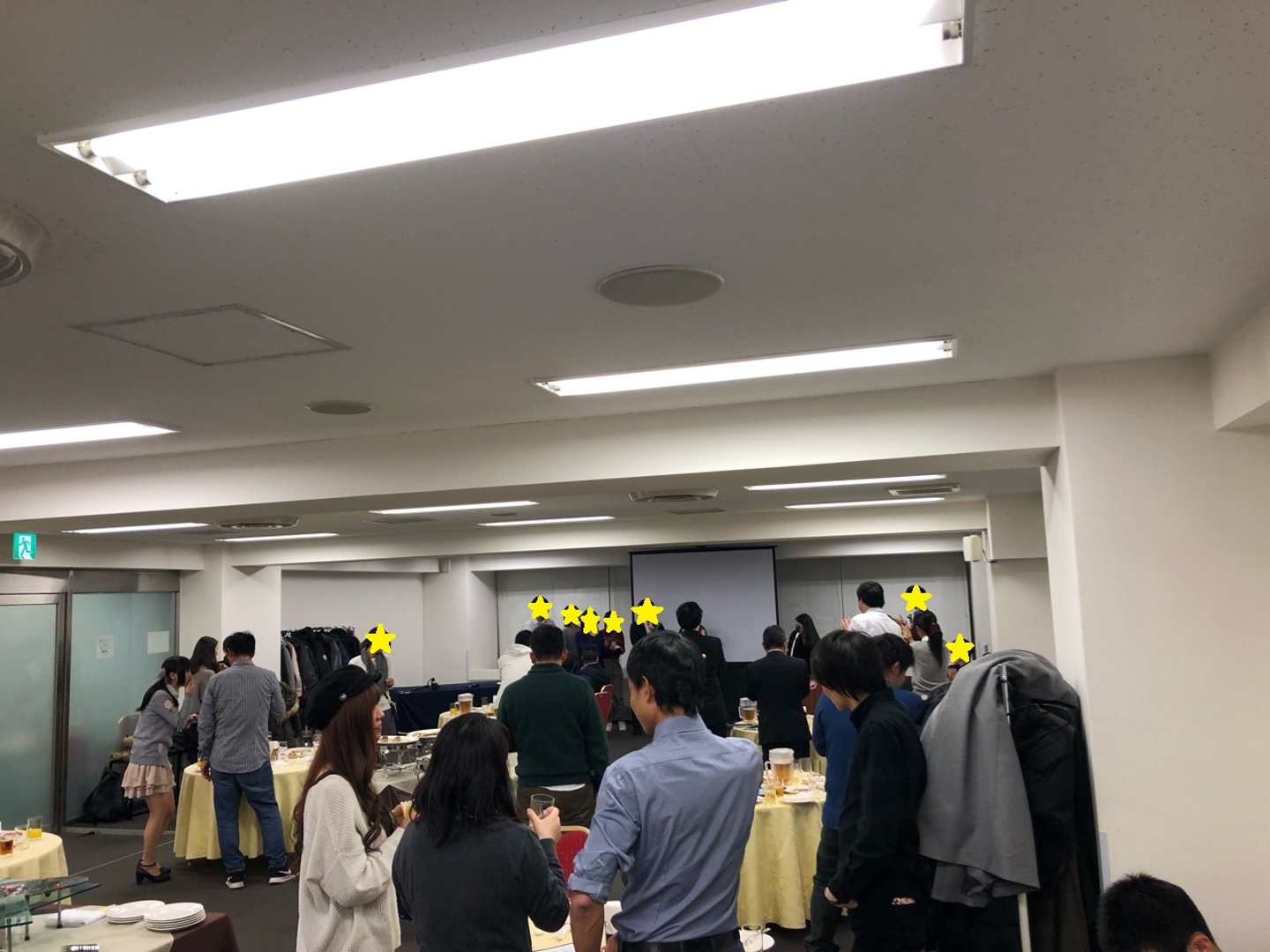 渋谷のホールの1室を貸し切り、来年に向けての決起や年間MVPの発表を行ったり、美味しい料理とお酒とともに楽しい時間を過ごせたと思います。