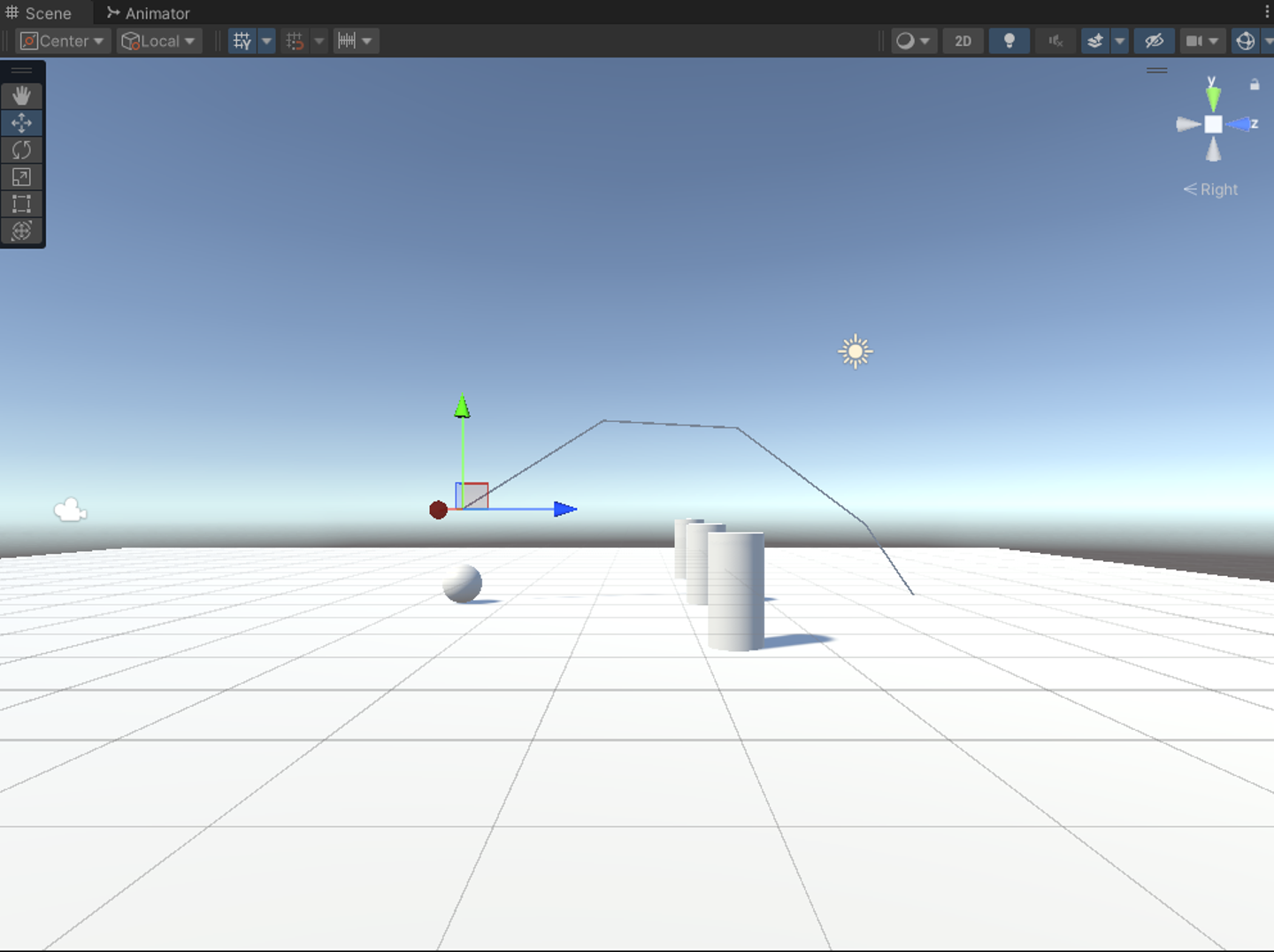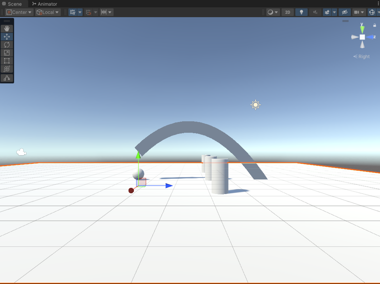 教えてもらった通りオブジェクトを配置してインスペクタから各プロパティなどを設定します。